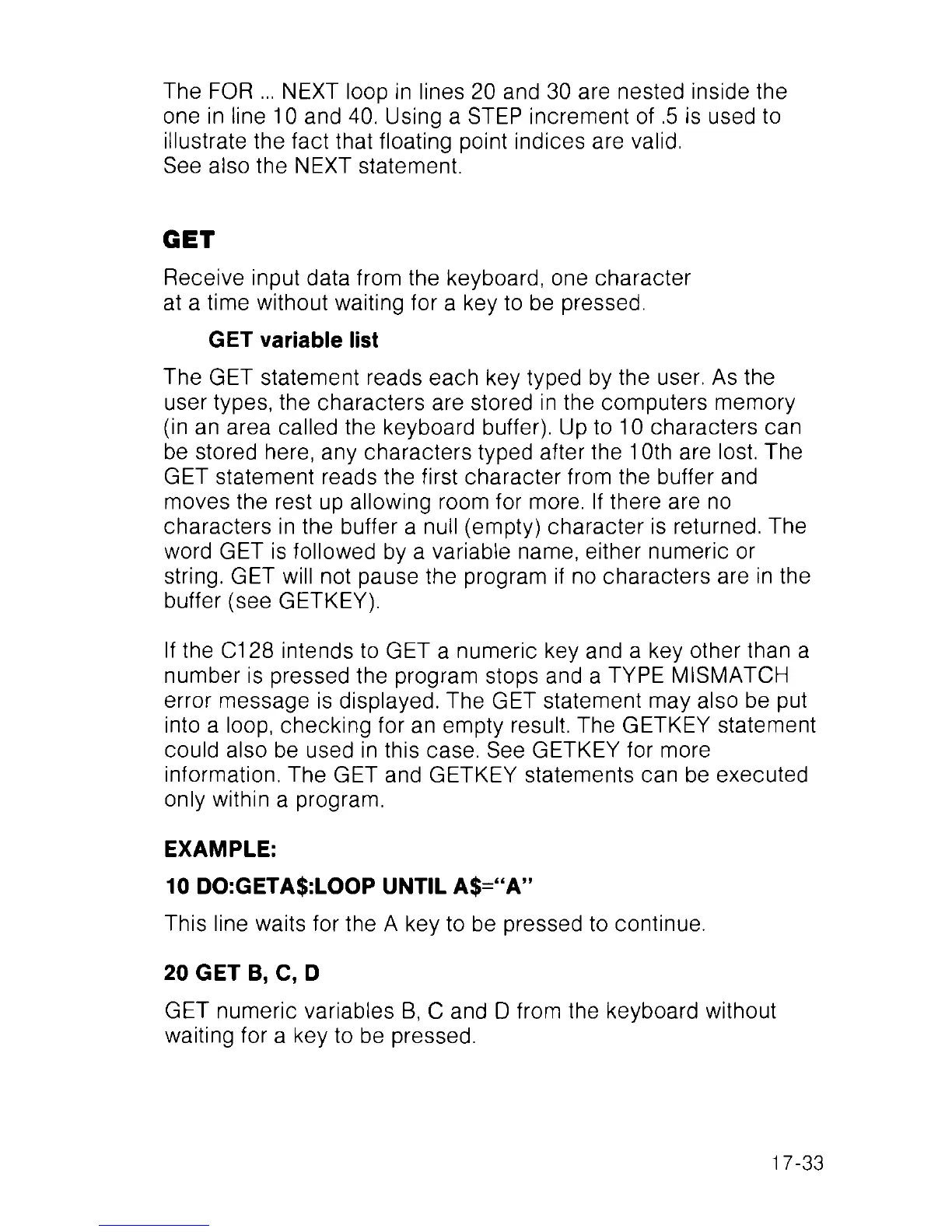10 DO:GETA$:LOOP UNTIL A$=“A”