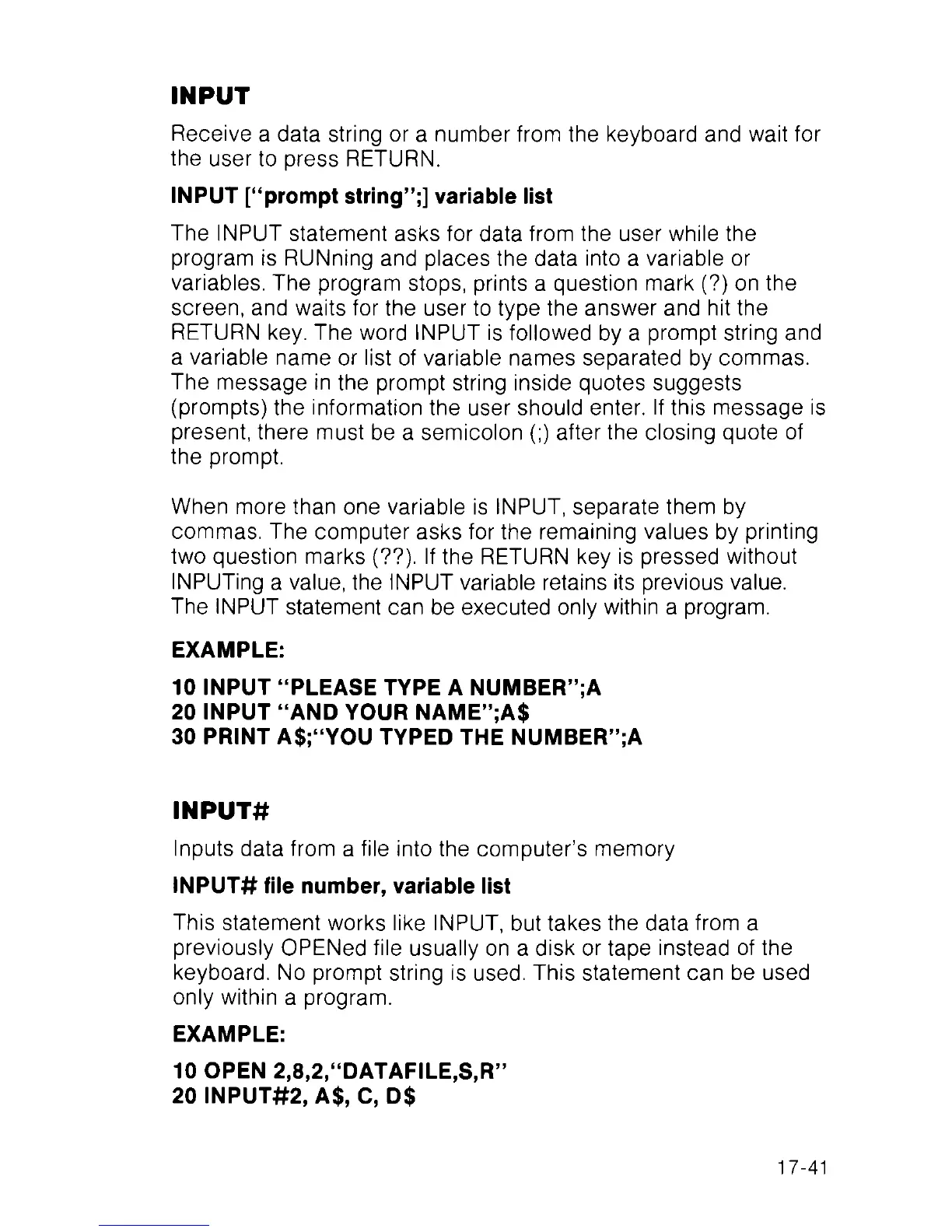 30 PRINT A$;“YOU TYPED THE NUMBER”;A