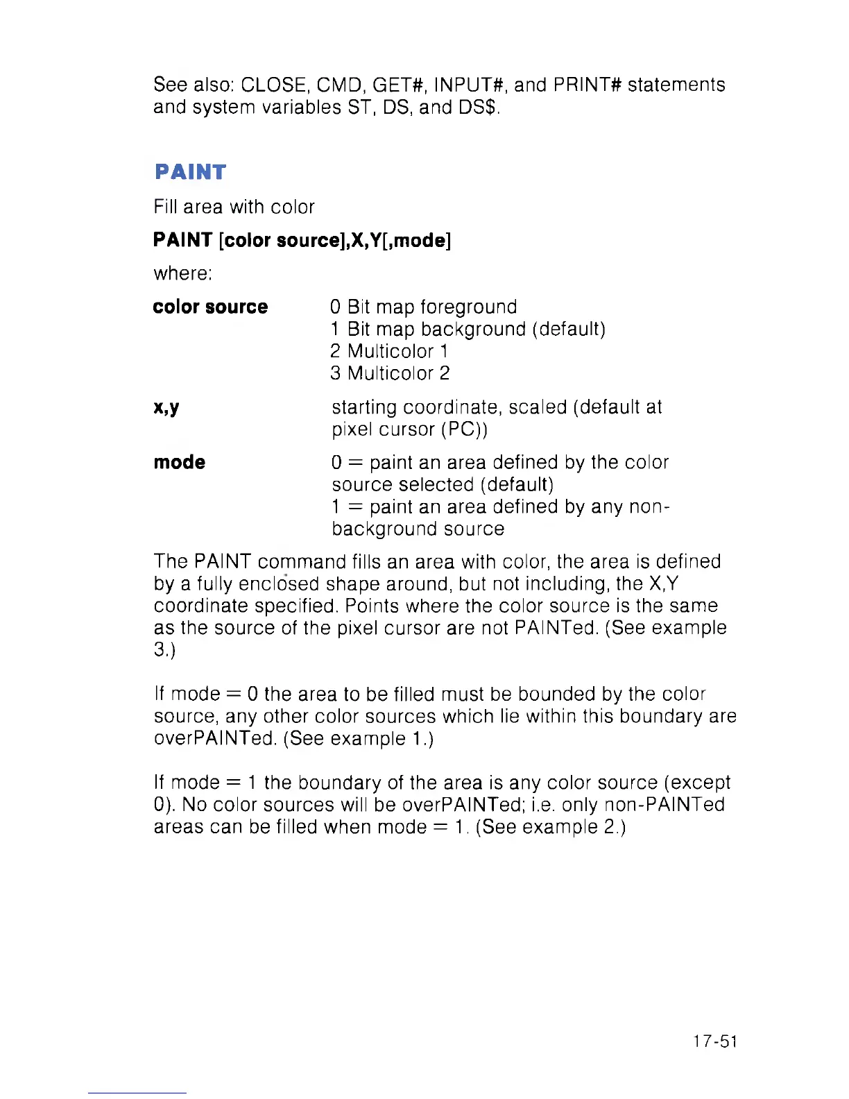 See also: CLOSE, CMD, GET#, INPUT#, and PRINT# statements