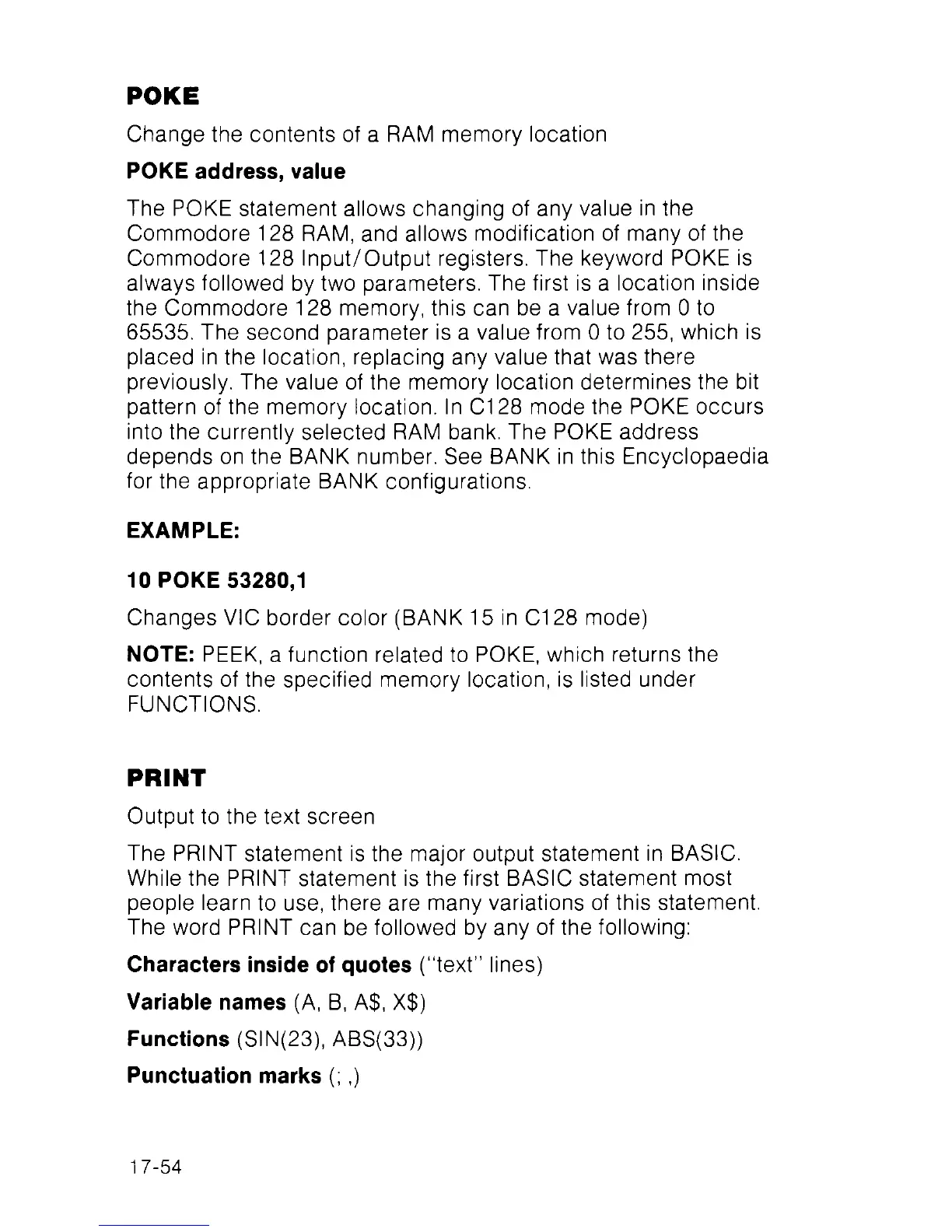 Commodore 128 Input/Output registers. The keyword POKE is