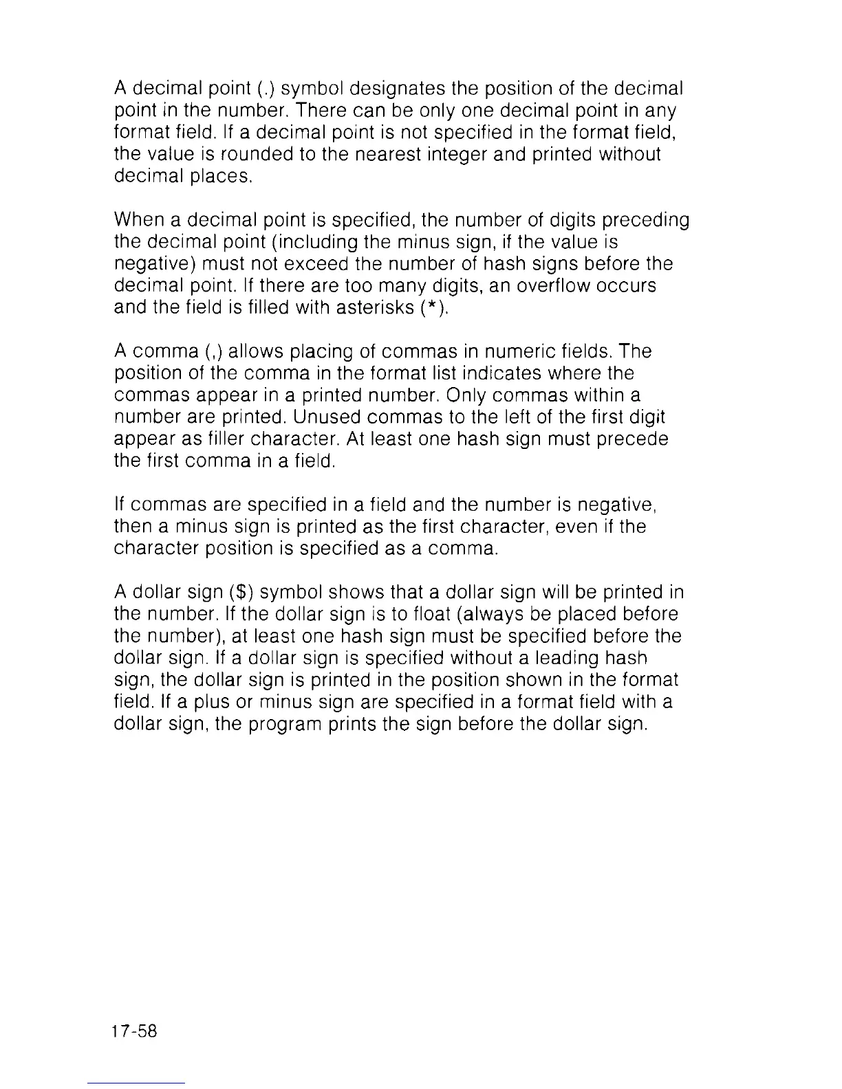 sign, the dollar sign is printed in the position shown in the format