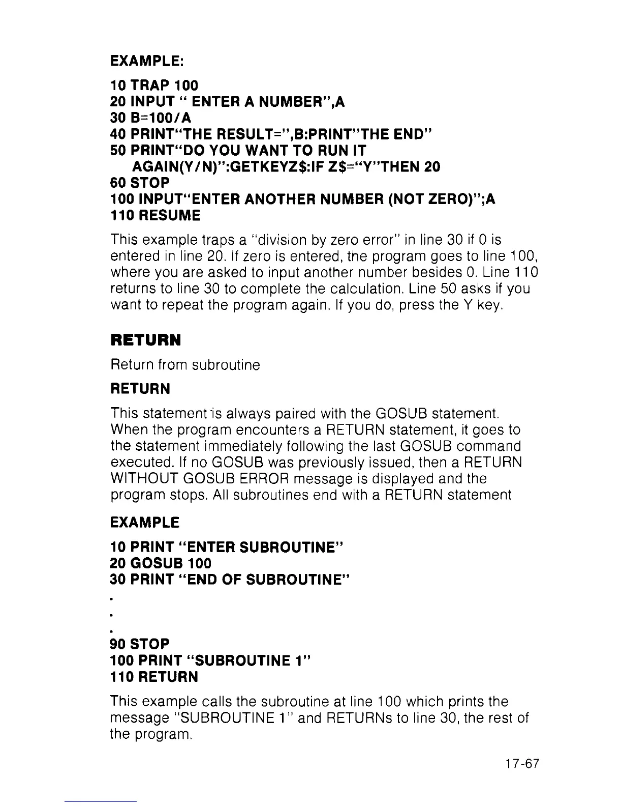 100 INPUT“ENTER ANOTHER NUMBER (NOT ZERO)”;A