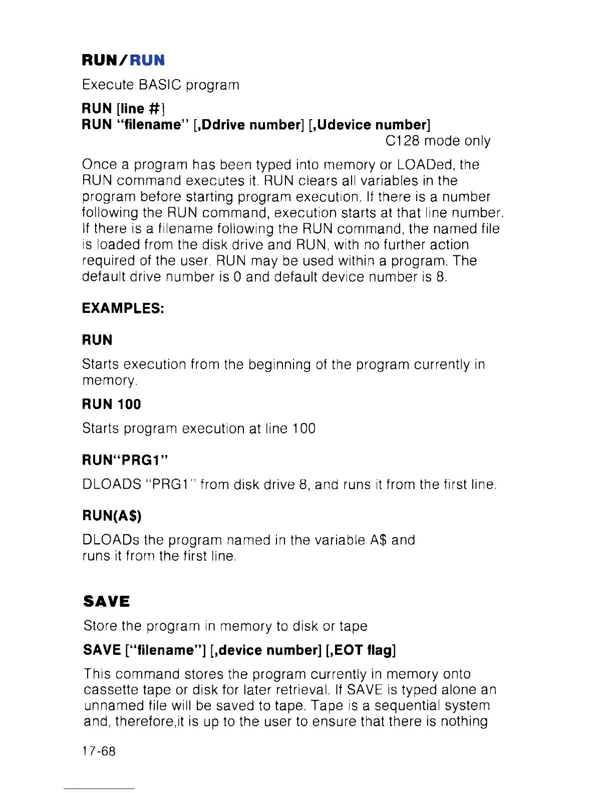 required of the user. RUN may be used within a program. The