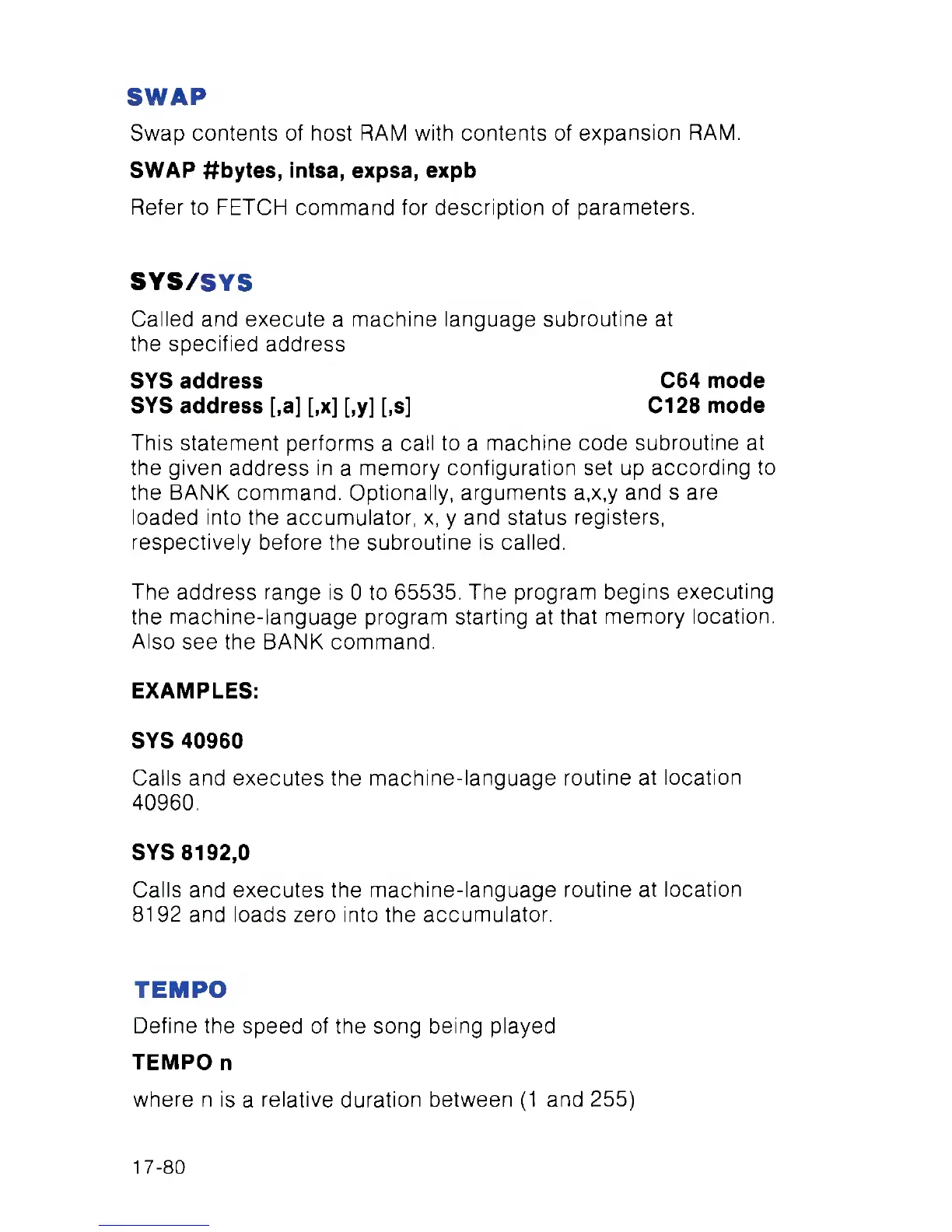 SYS address C64 mode