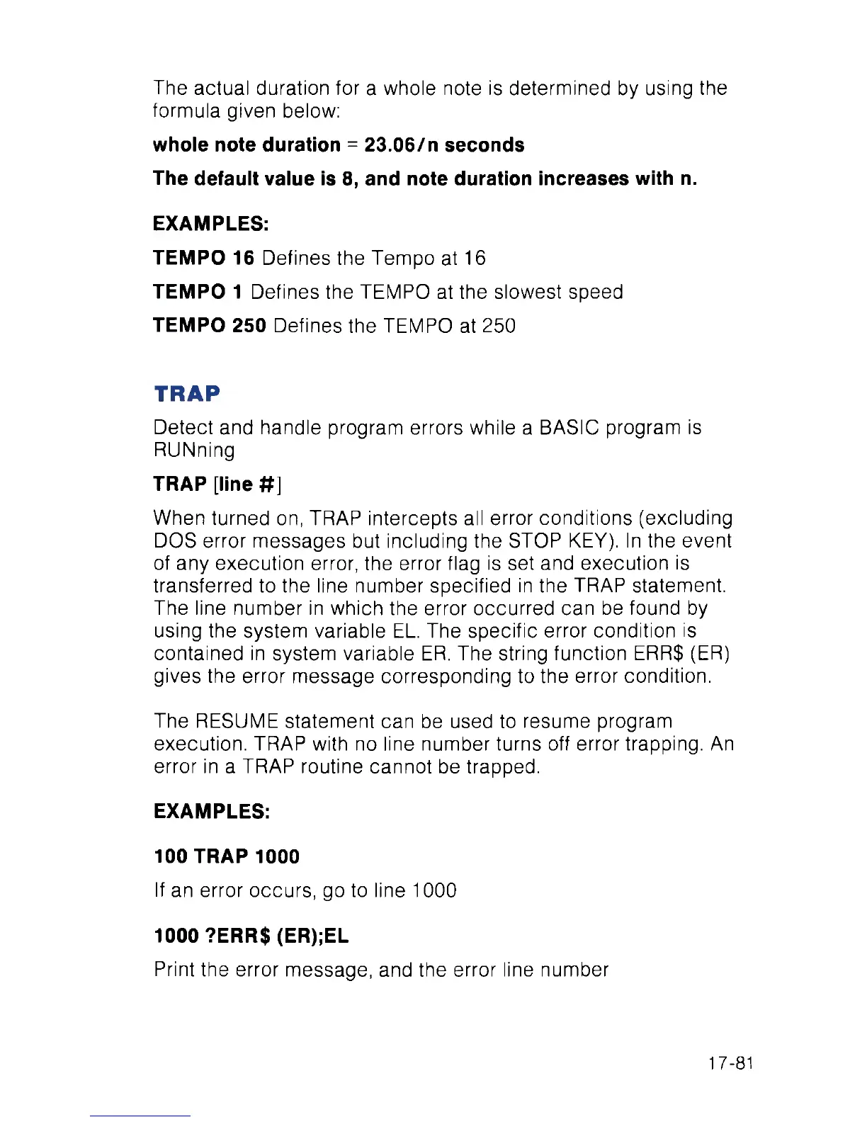 execution. TRAP with no line number turns off error trapping. An
