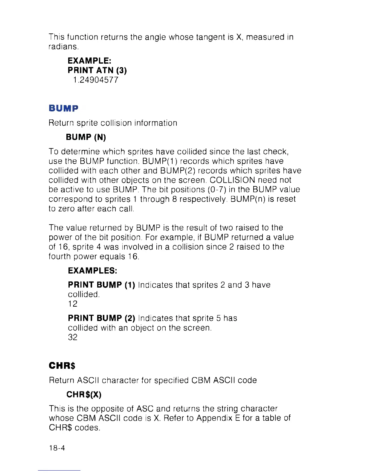 correspond to sprites 1 through 8 respectively. BUMP(n) is reset