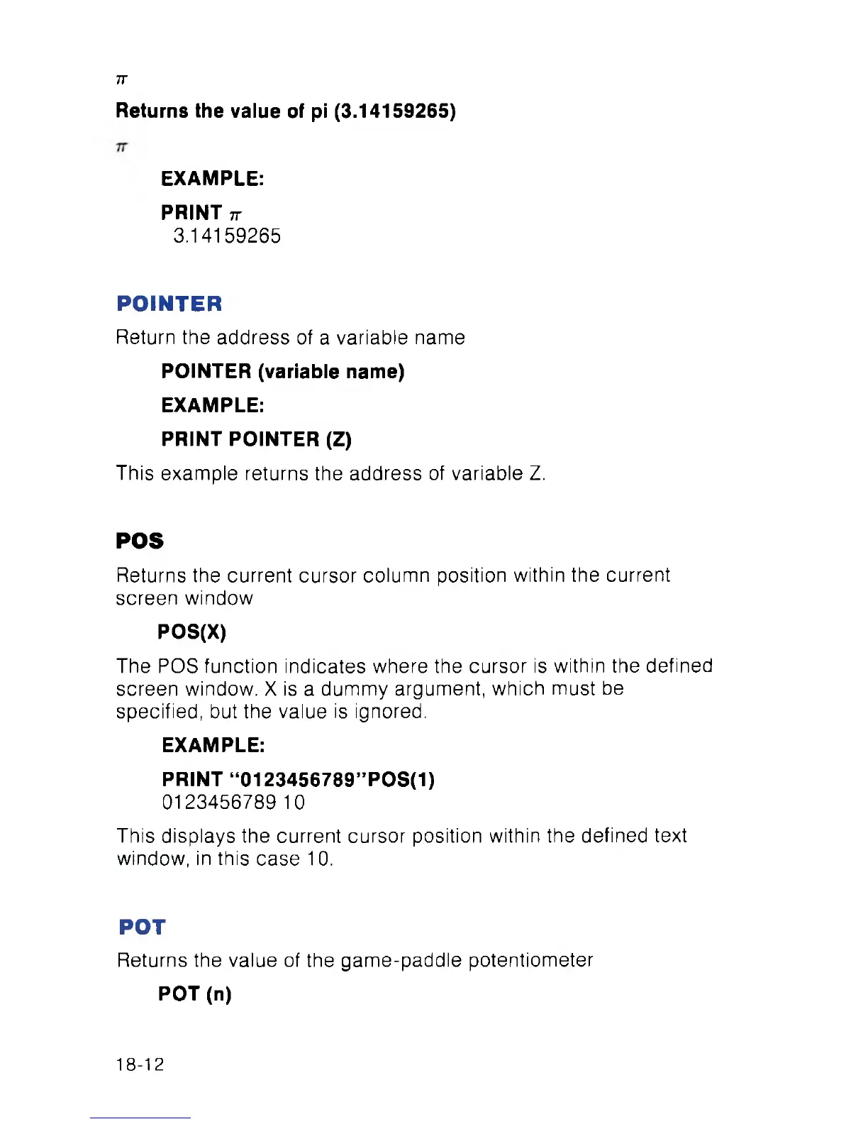 The POS function indicates where the cursor is within the defined