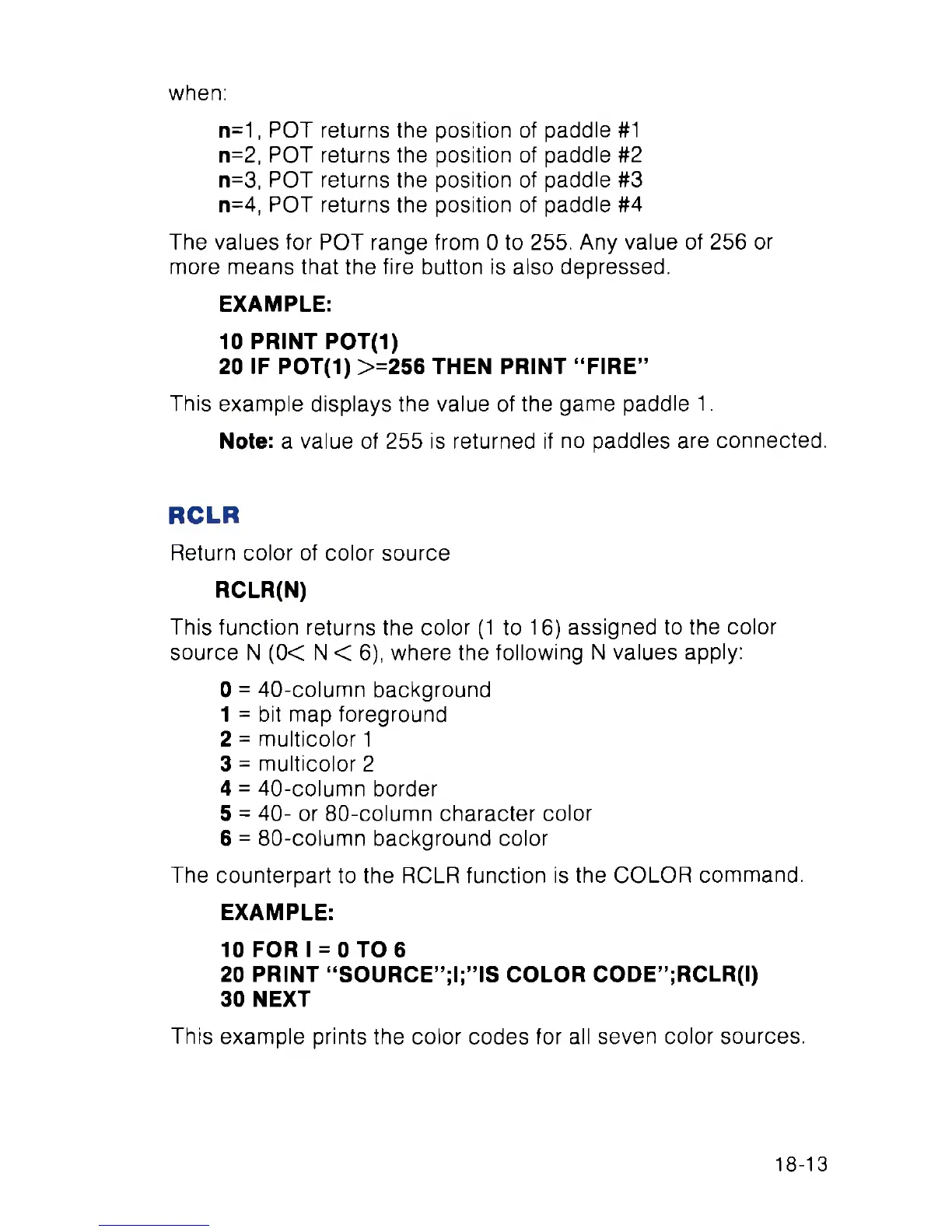20 PRINT “SOURCE”;l;”IS COLOR CODE”;RCLR(l)