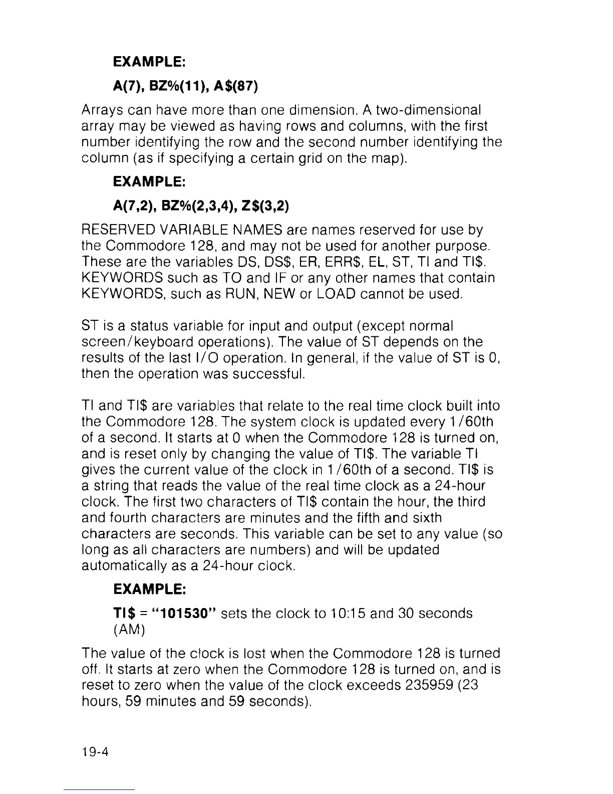 of a second. It starts at 0 when the Commodore 128 is turned on,