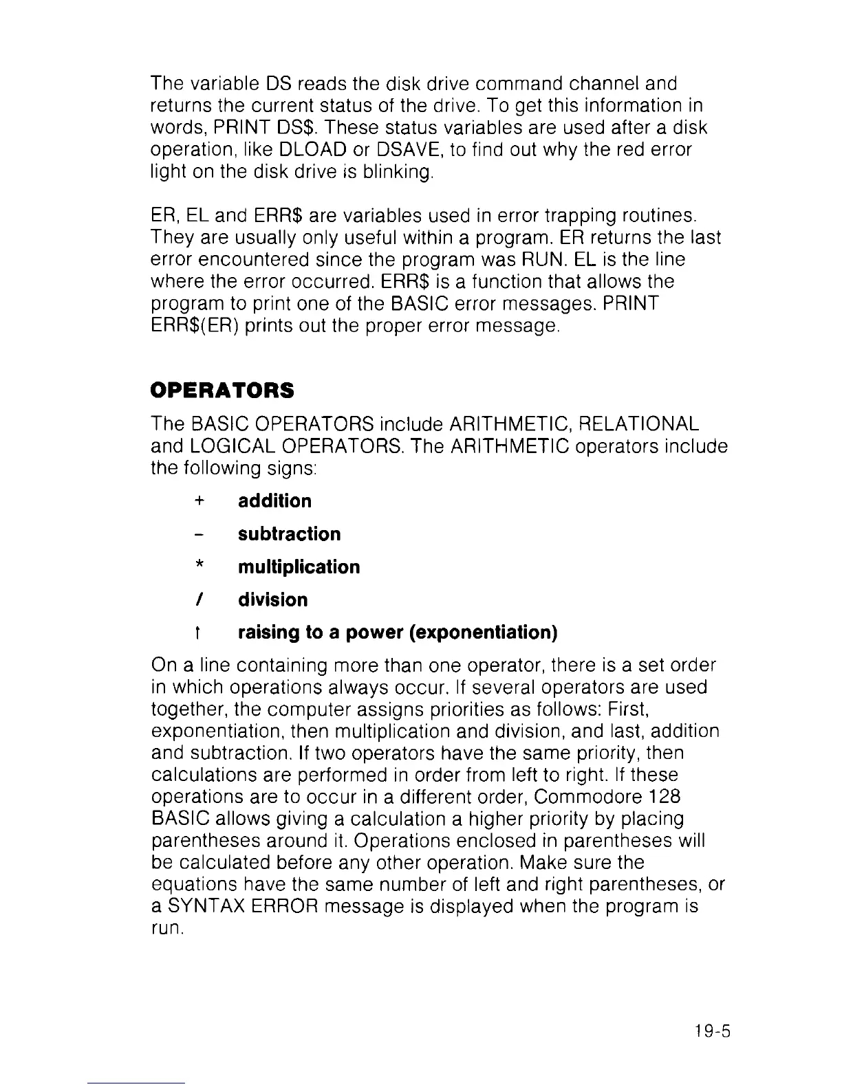 words, PRINT DS$. These status variables are used after a disk
