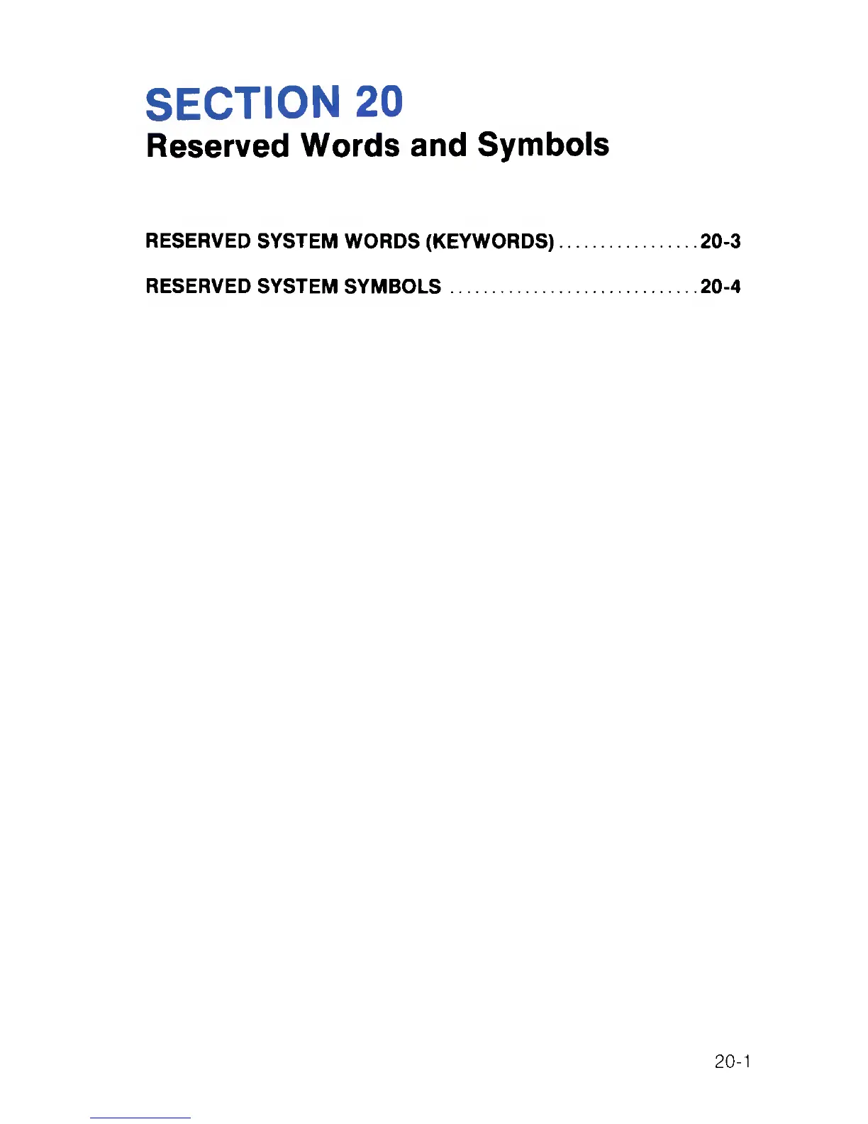 RESERVED SYSTEM WORDS (KEYWORDS)
