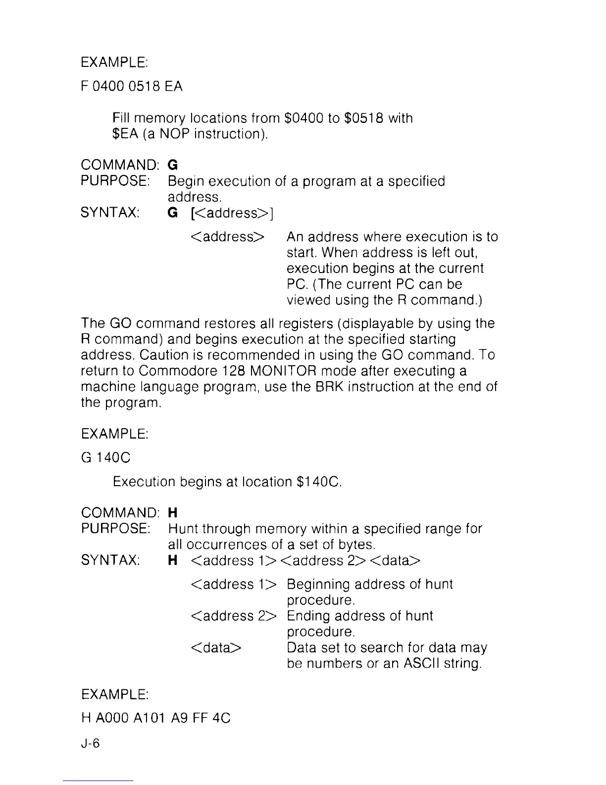 address. Caution is recommended in using the GO command. To