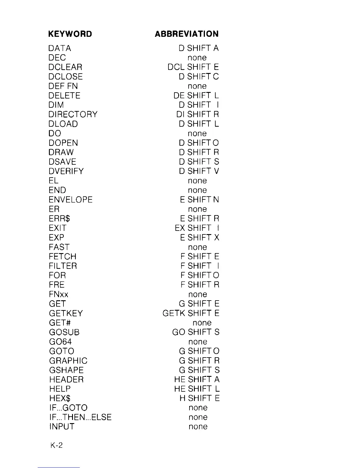 KEYWORD ABBREVIATION