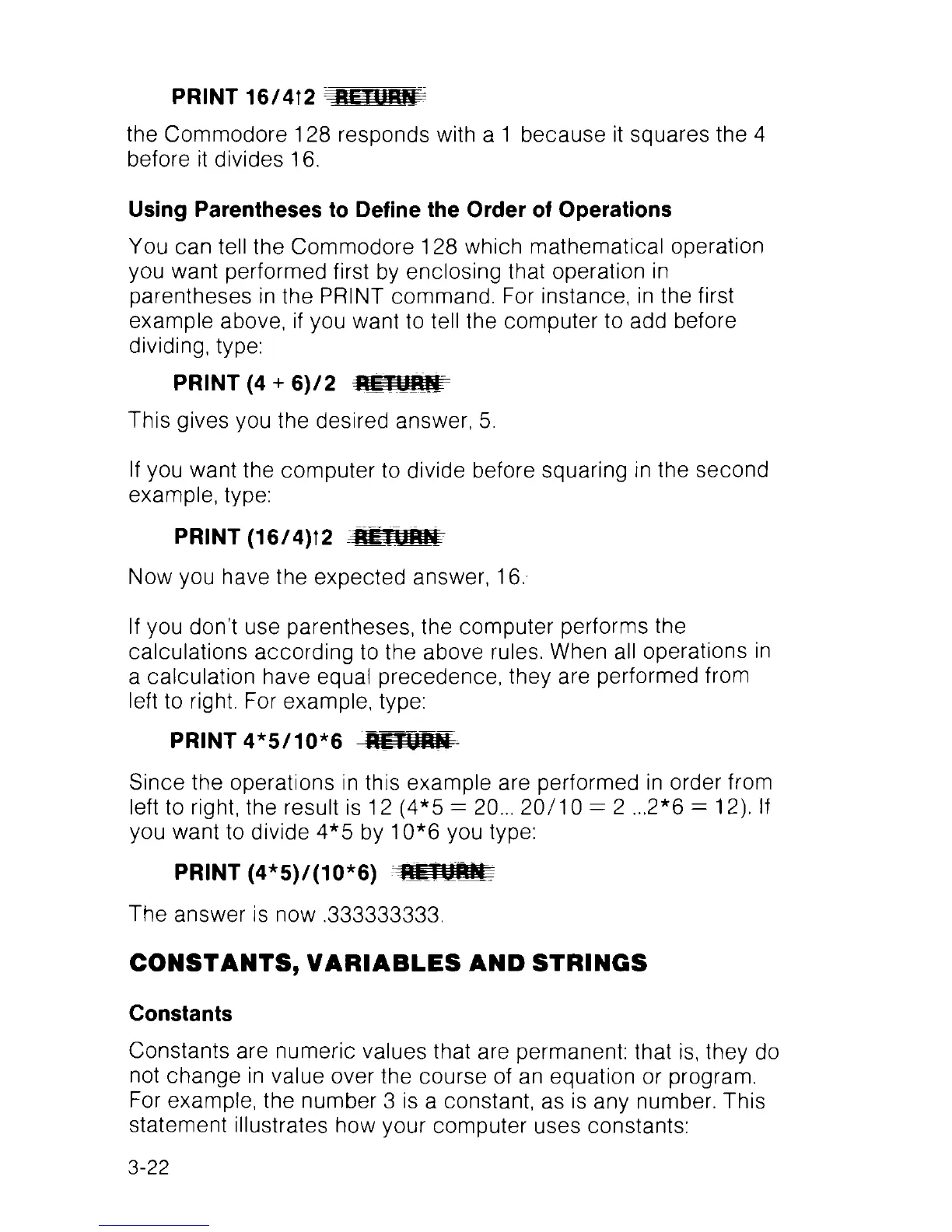 parentheses in the PRINT command. For instance, in the first