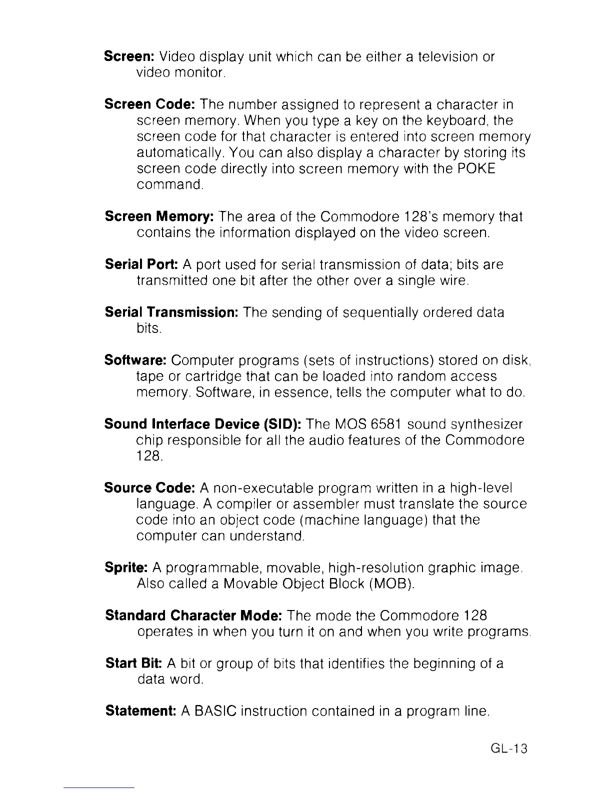 Screen Memory: The area of the Commodore 128’s memory that