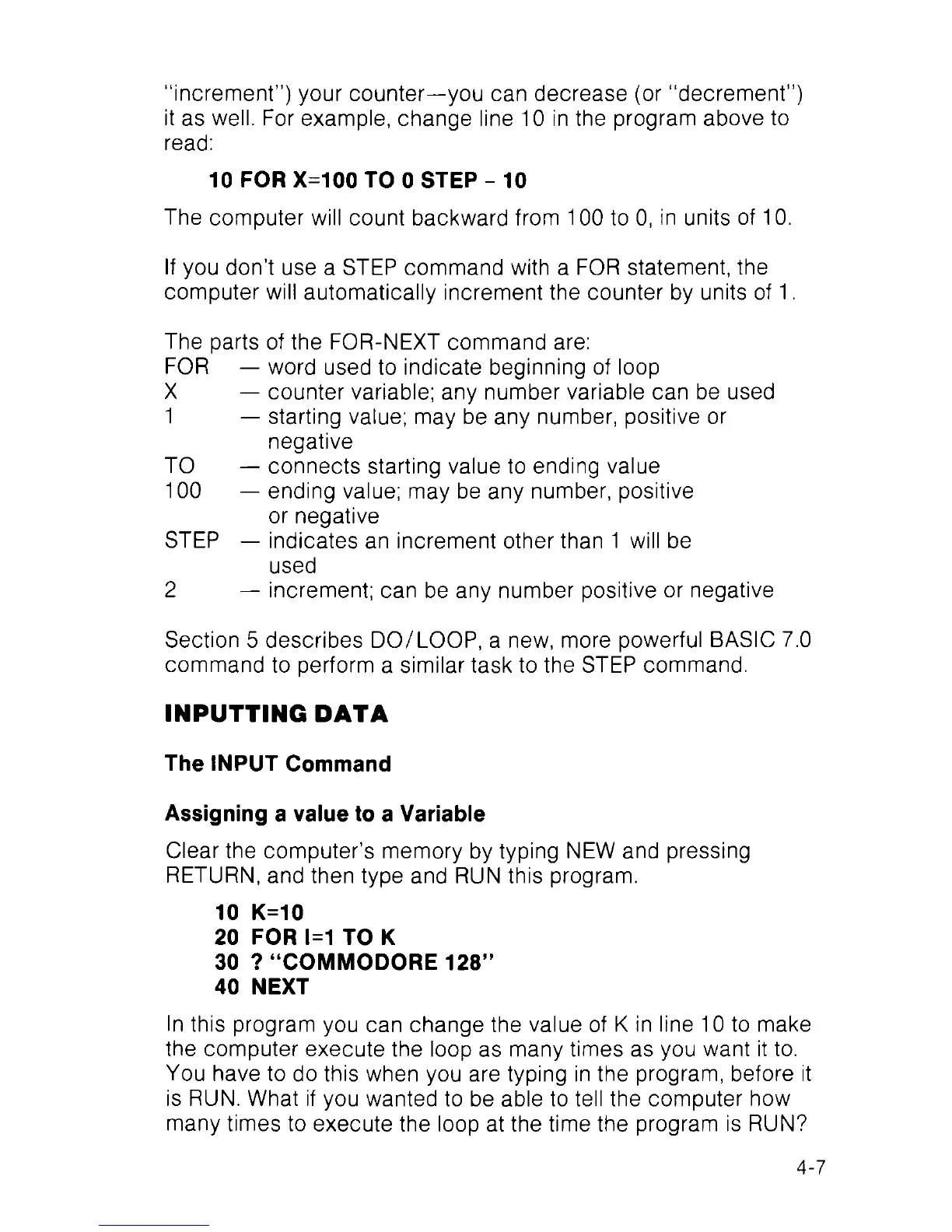 Section 5 describes DO/LOOP, a new, more powerful BASIC 7.0