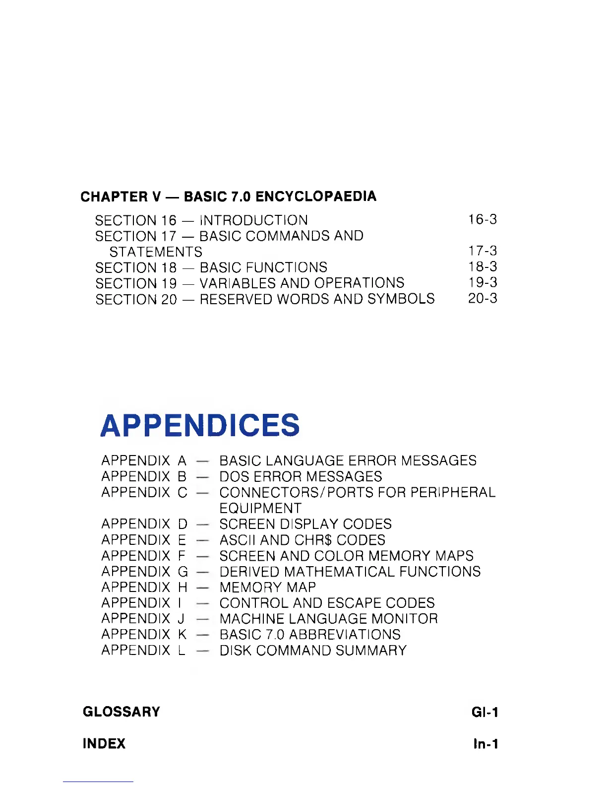 CHAPTER V — BASIC 7.0 ENCYCLOPAEDIA
