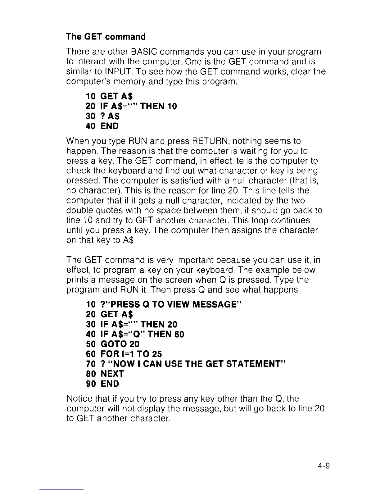 press a key. The GET command, in effect, tells the computer to