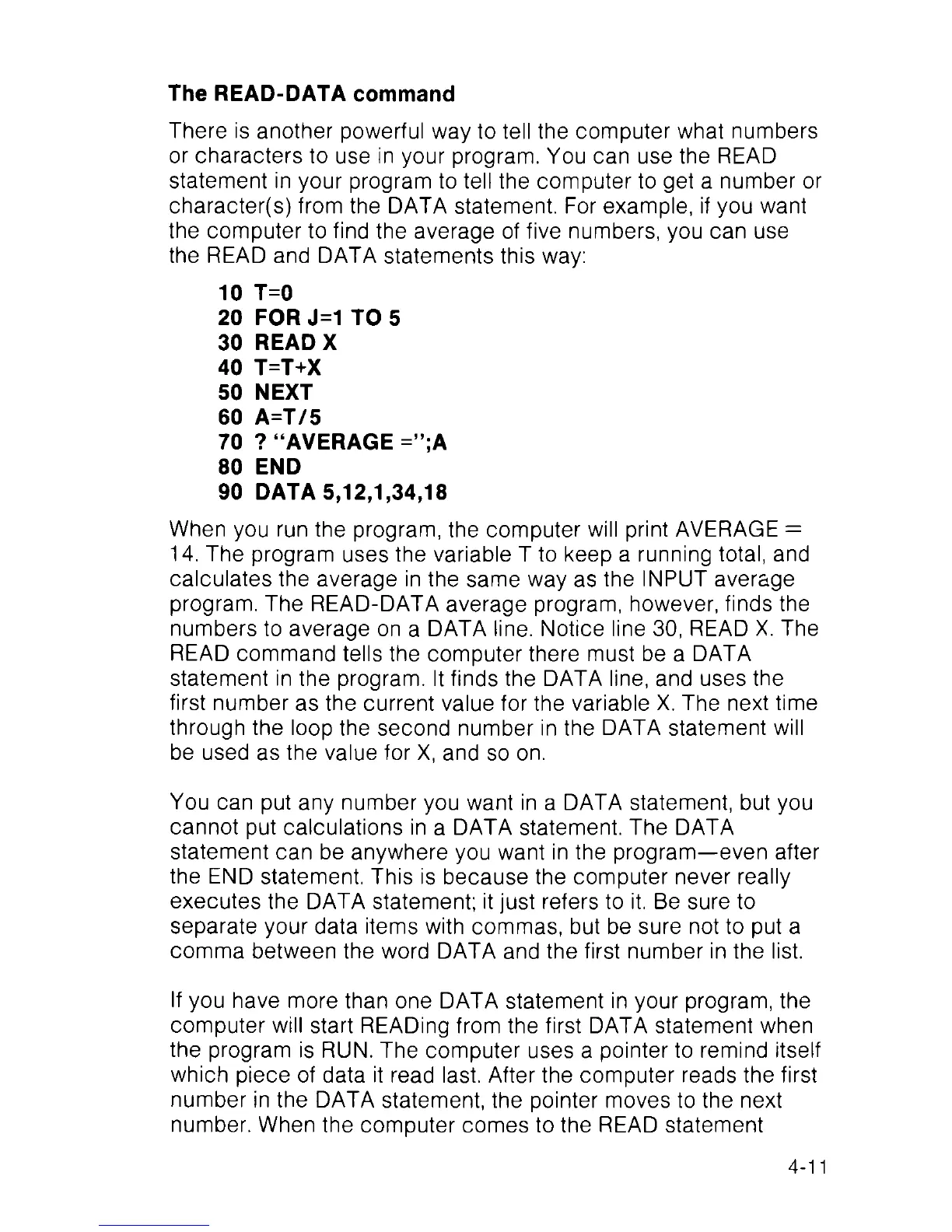 numbers to average on a DATA line. Notice line 30, READ X. The