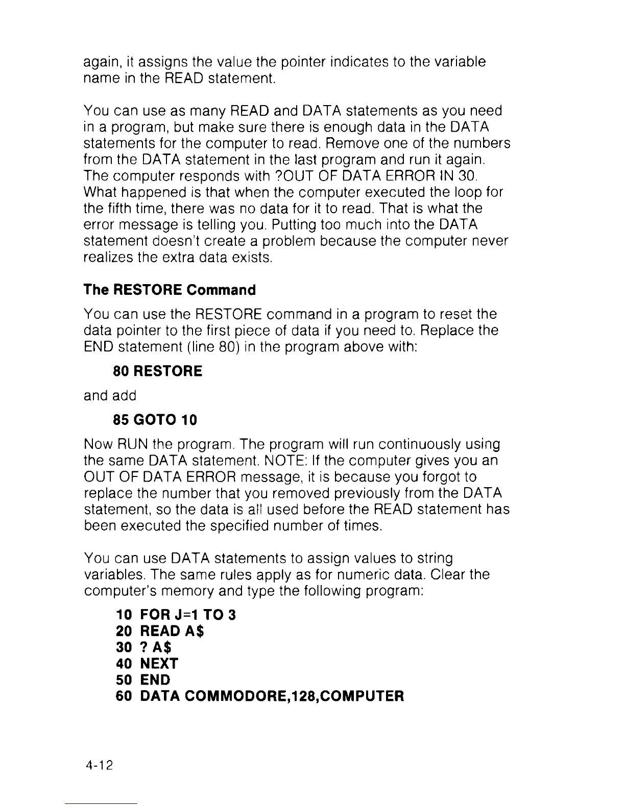 The computer responds with ?OUT OF DATA ERROR IN 30.