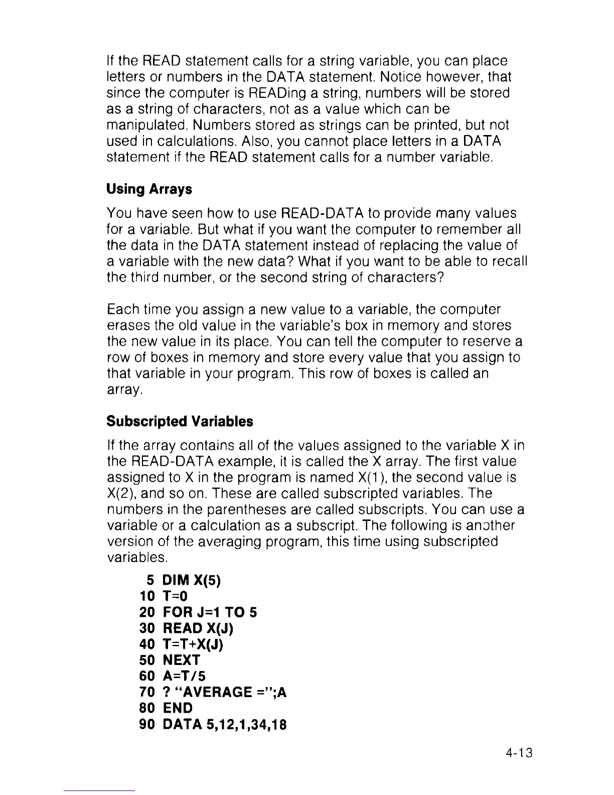 Commodore 128D - Subscripted Variables; Using Arrays