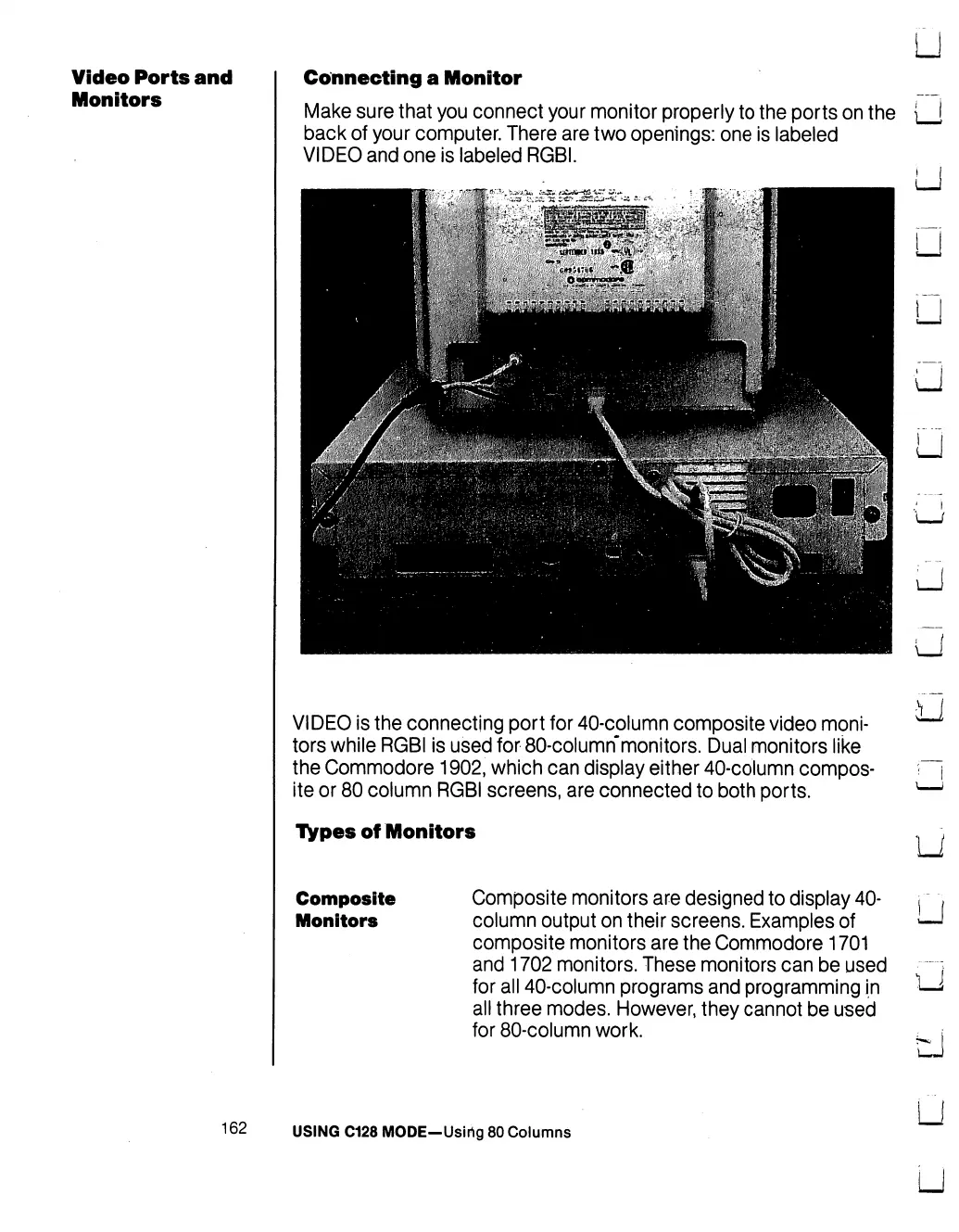 Commodore 128D - Video Ports and Monitors; Connecting a Monitor; Types of Monitors; Composite Monitors