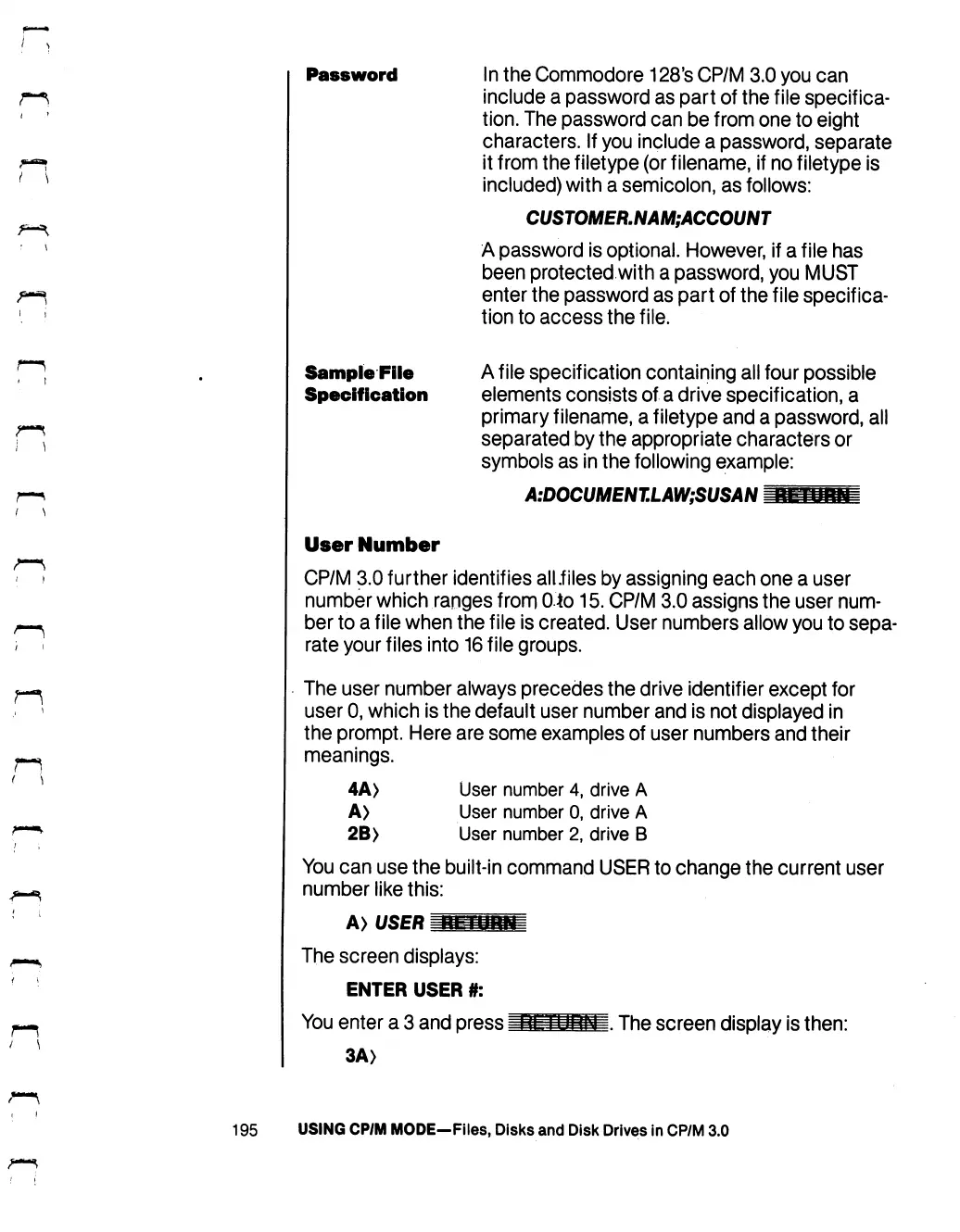 Commodore 128D - Password; Sample File Specif Ication; User Number