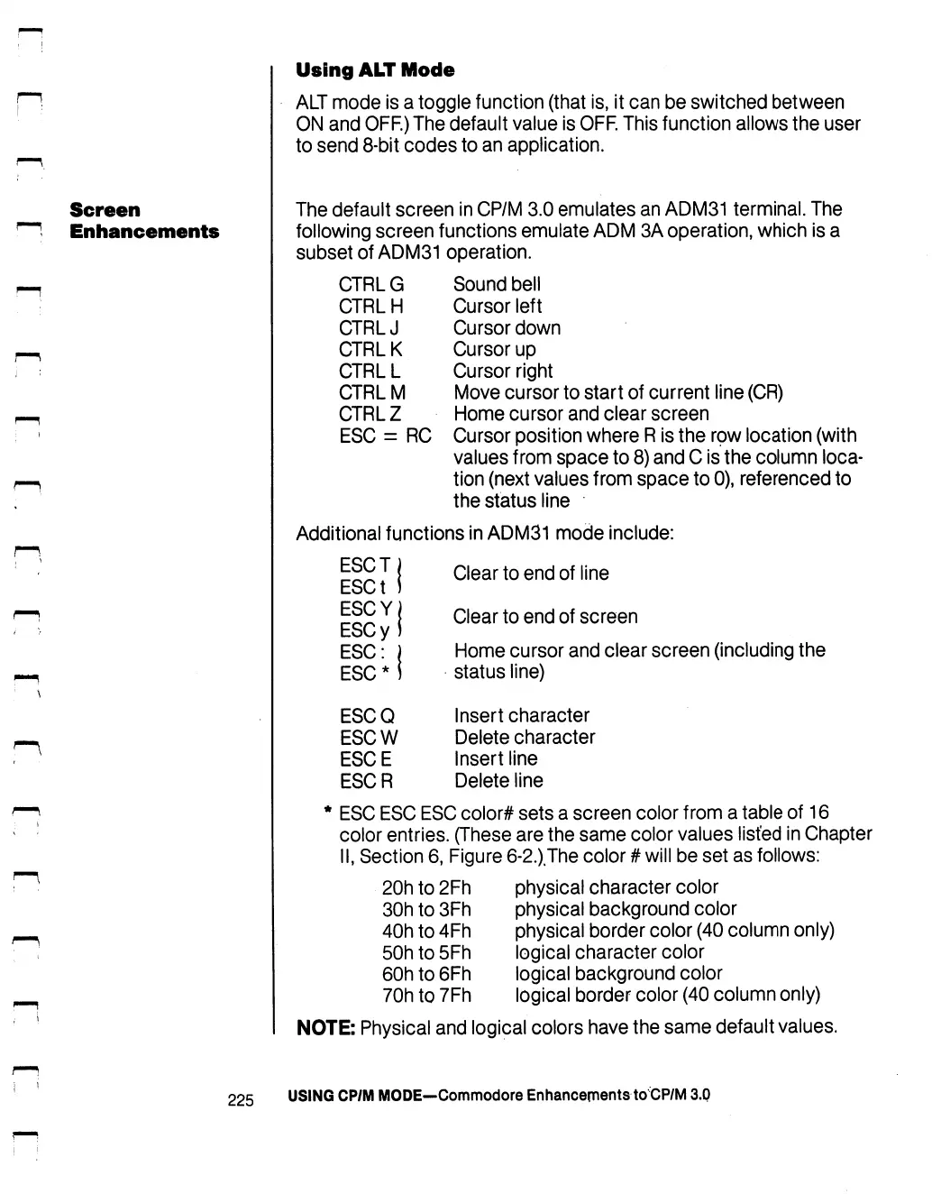 Commodore 128D - Using ALT Mode; Screen Enhancements