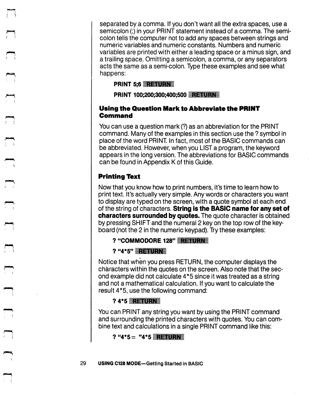Commodore 128D - Using the Question Mark to Abbreviate the PRINT Command; Printing Text
