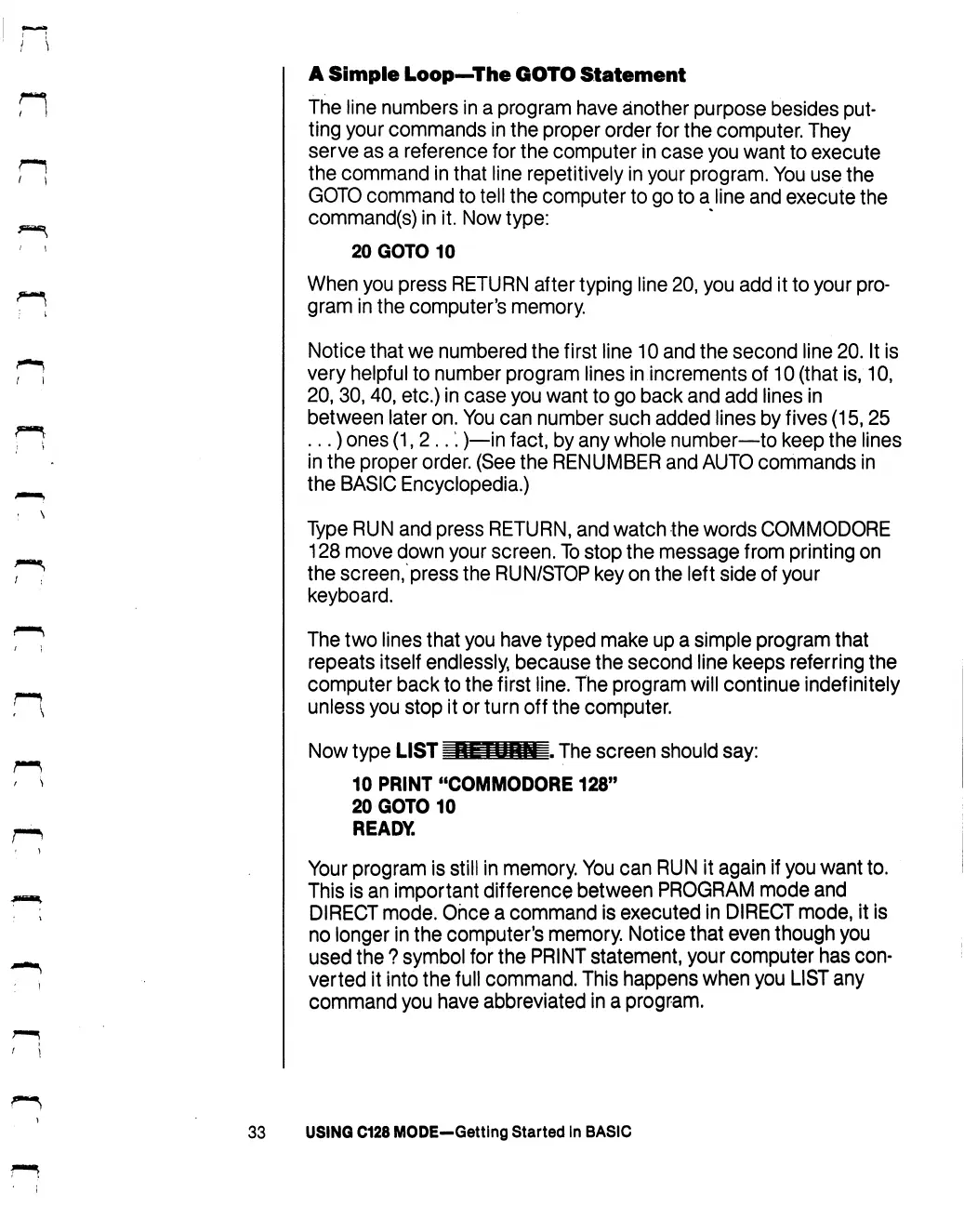 Commodore 128D - A Simple Loop-The GOTO Statement