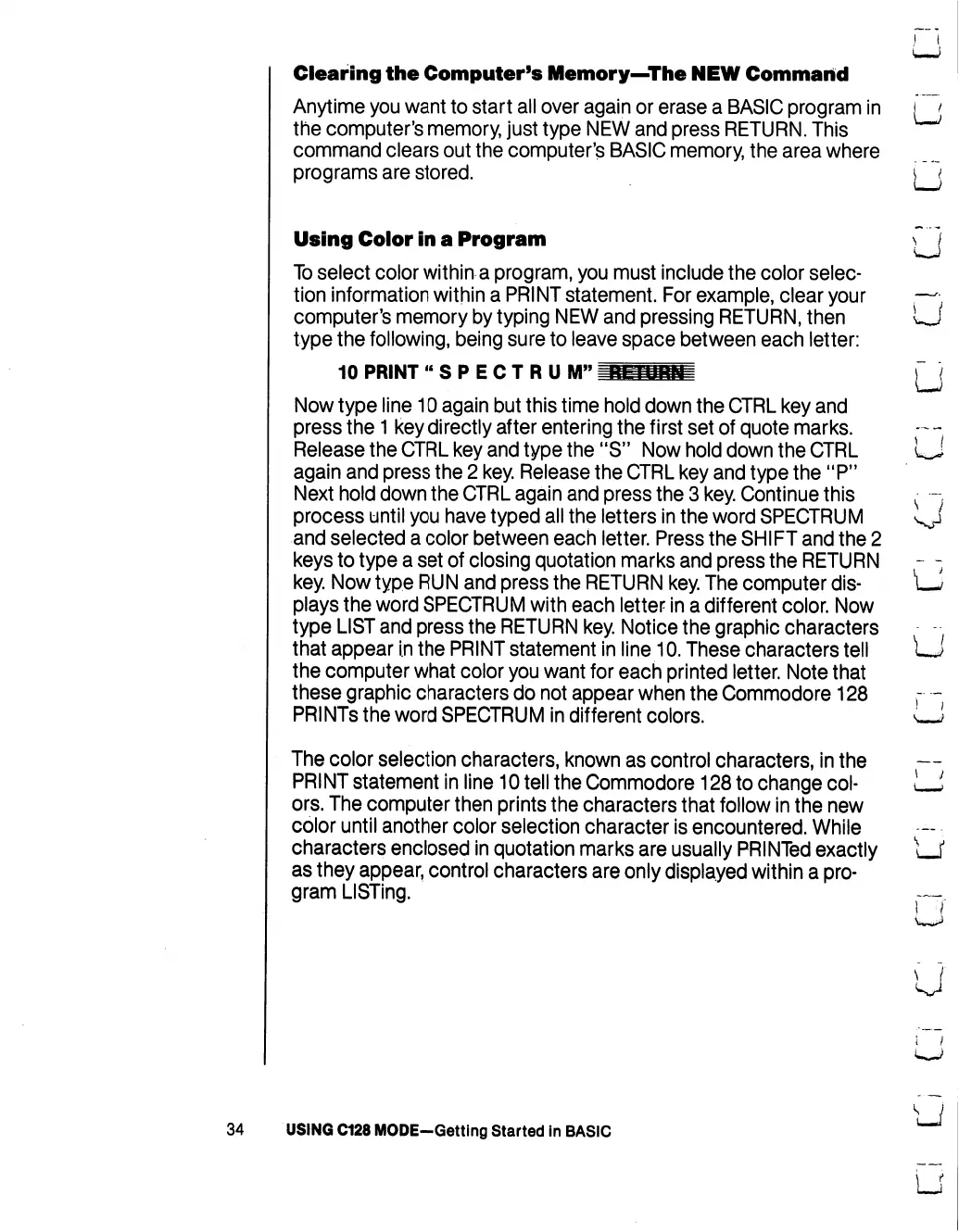 Commodore 128D - Clearing the Computers Memory-The NEW Command; Using Color in a Program