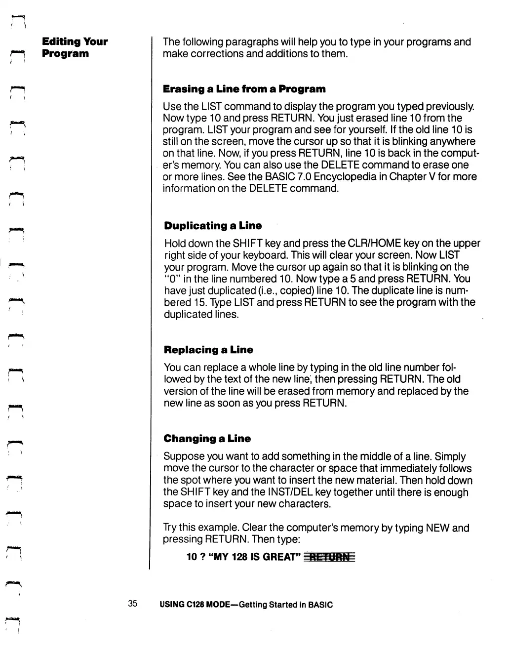 Commodore 128D - Editing Your Program; Erasing a Line from a Program; Duplicating a Line; Replacing a Line