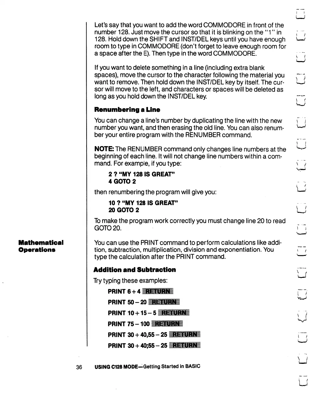 Commodore 128D - Mathematical Operations; Addition and Subtraction; Multiplication and Division