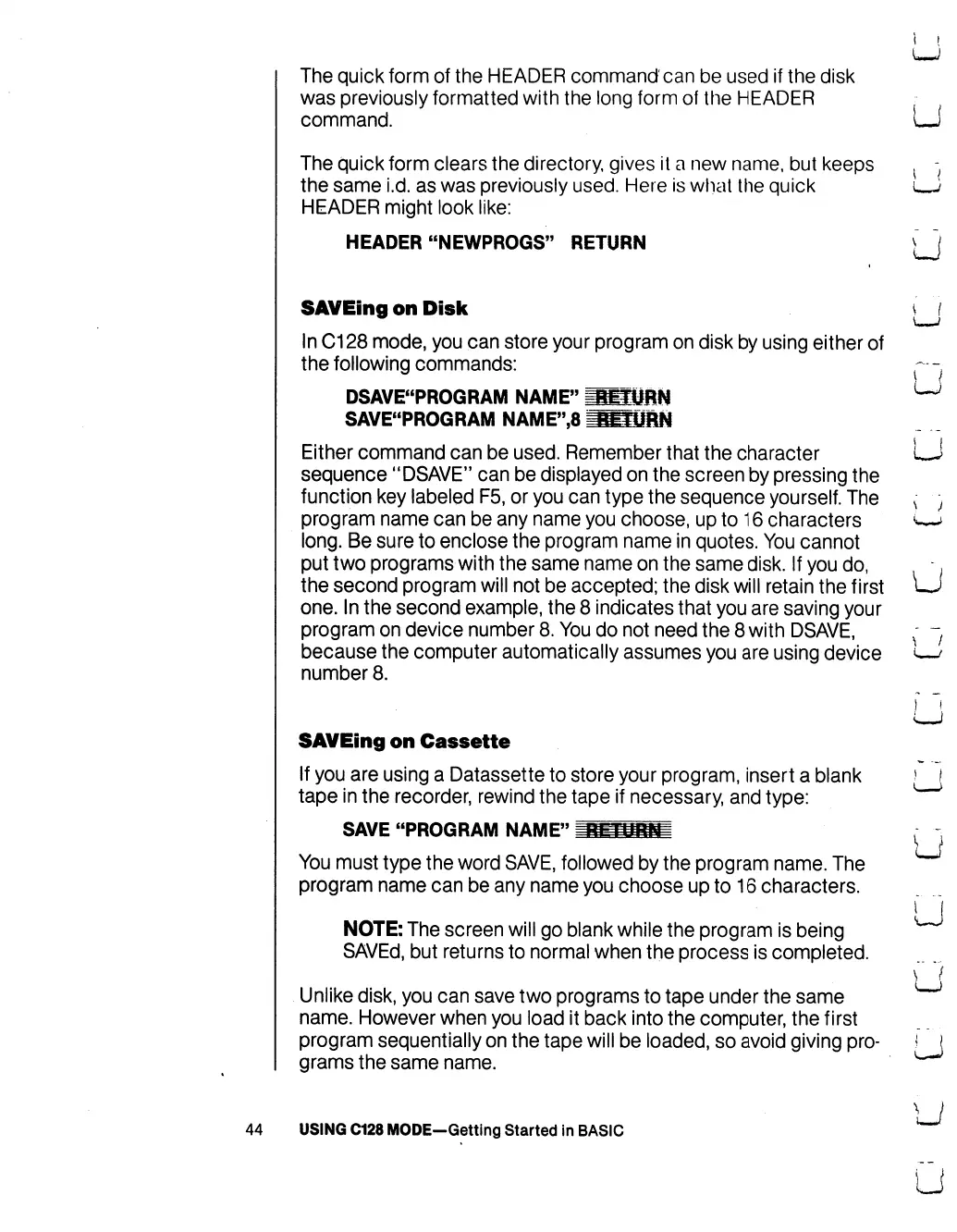 Commodore 128D - Saveingondisk; Saveing on Cassette