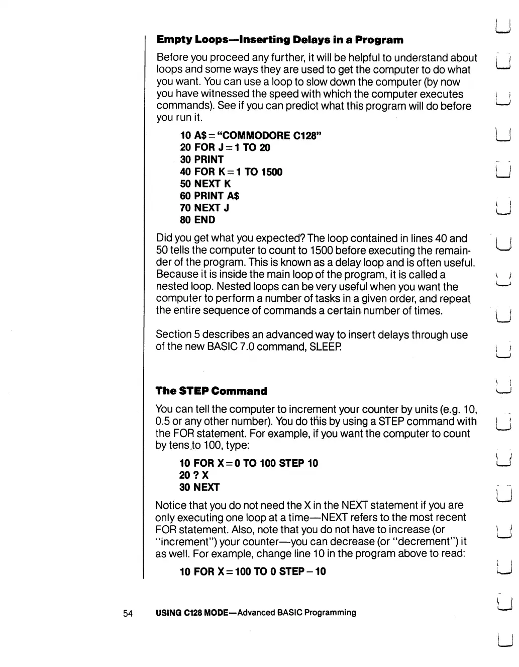 Commodore 128D - Empty Loops-Inserting Delays in a Program; The STEP Command