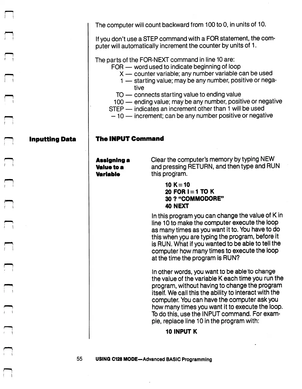 Commodore 128D - Inputting Data; The INPUT Command; Assigning a Value to a Variable