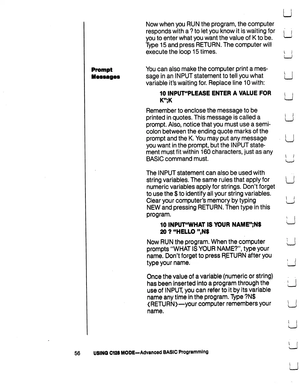 Commodore 128D - Prompt Messages