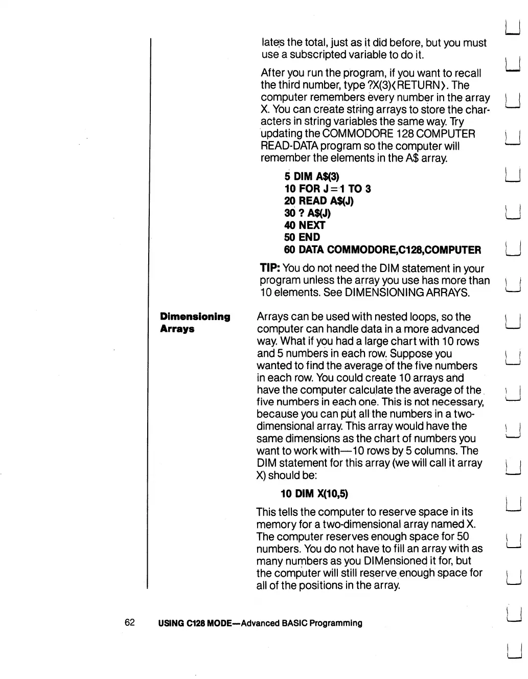 Commodore 128D - Dimensioning Arrays