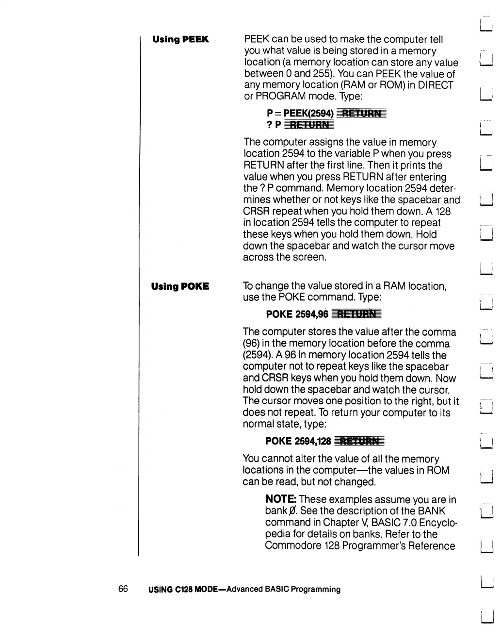 Commodore 128D - Using PEEK; Using POKE