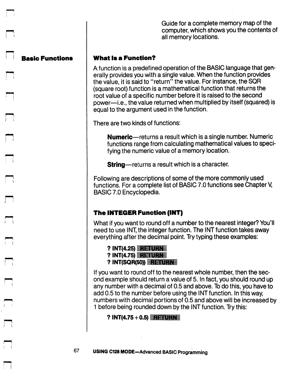 Commodore 128D - Basic Functions; What Is a Function; The INTEGER Function (INT)