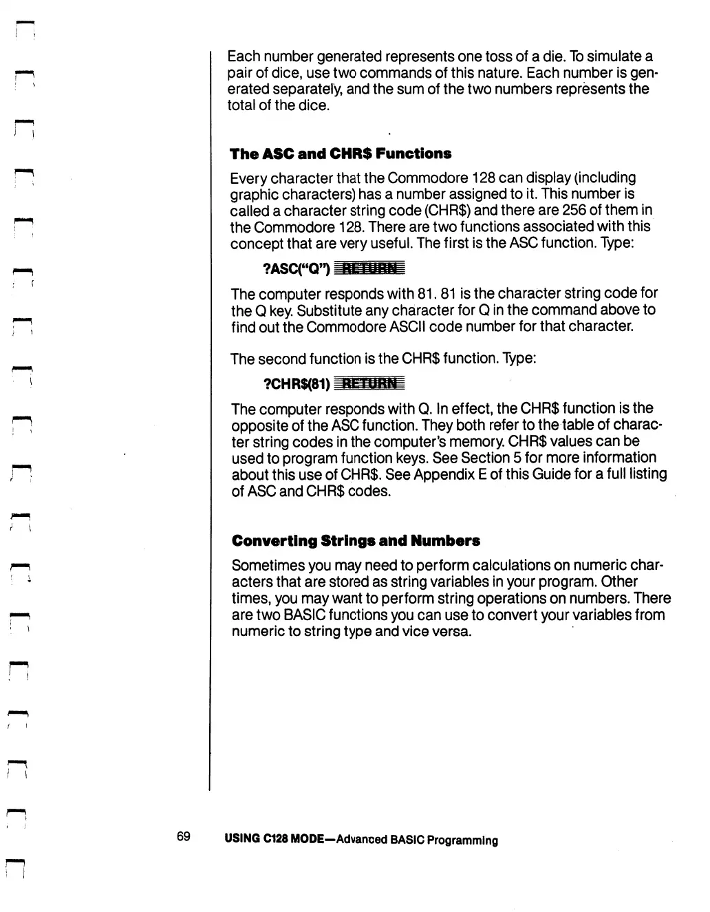 Commodore 128D - The ASC and CH R$ Commands; Converting Strings and Numbers
