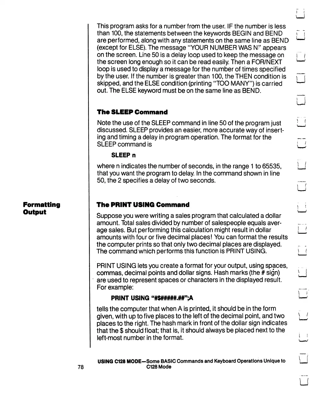 Commodore 128D - The SLEEP Command; Formatting Output; The PRINT USING Command