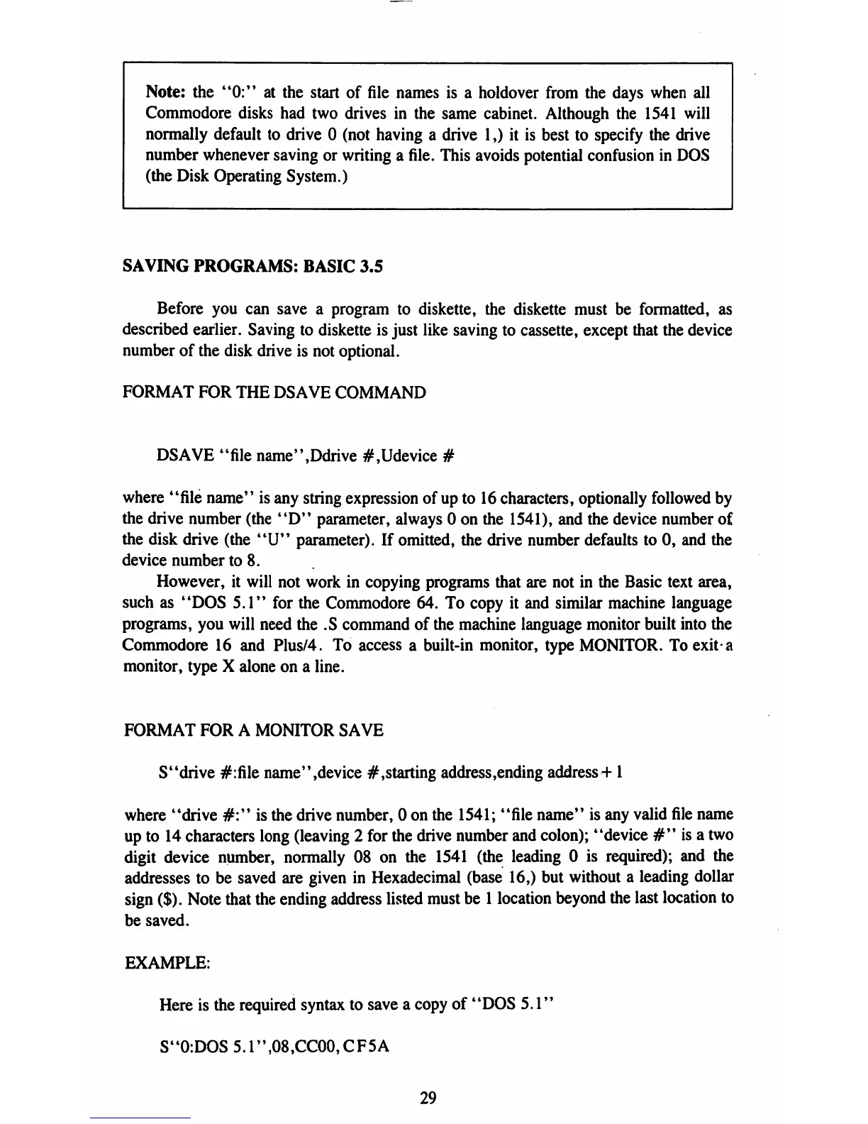 Commodore 1541-II - Saving Programs