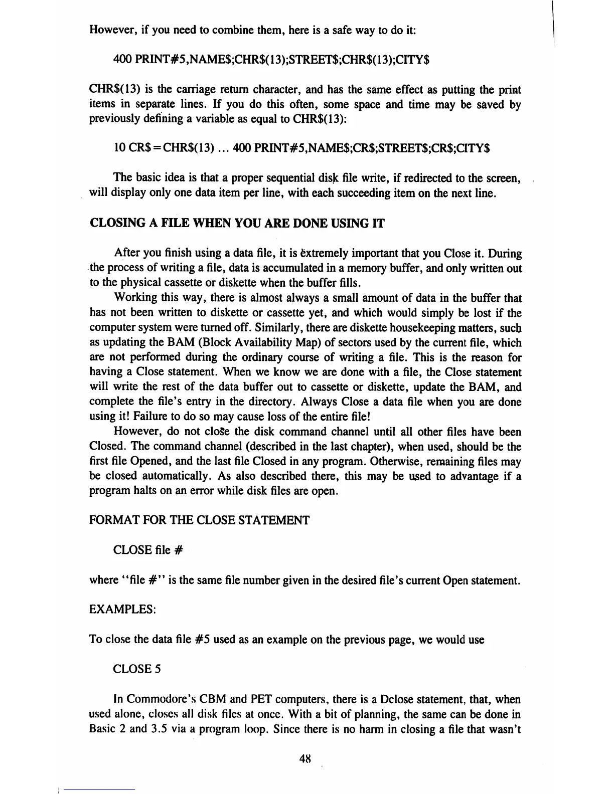 400PRINT#5,NAME$;CR$;STREET$;CR$;CITY$