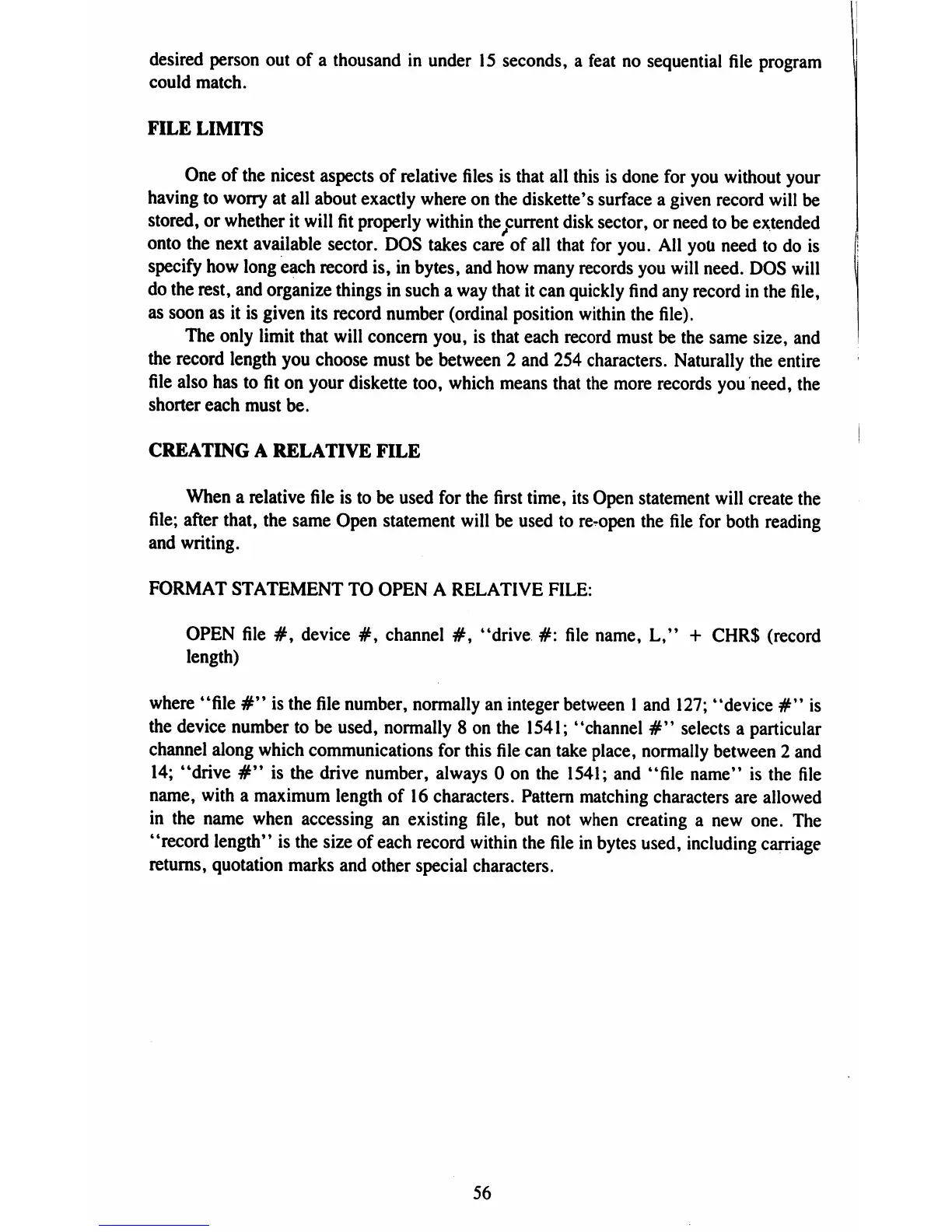Commodore 1541-II - File Limits; Creating a Relative File