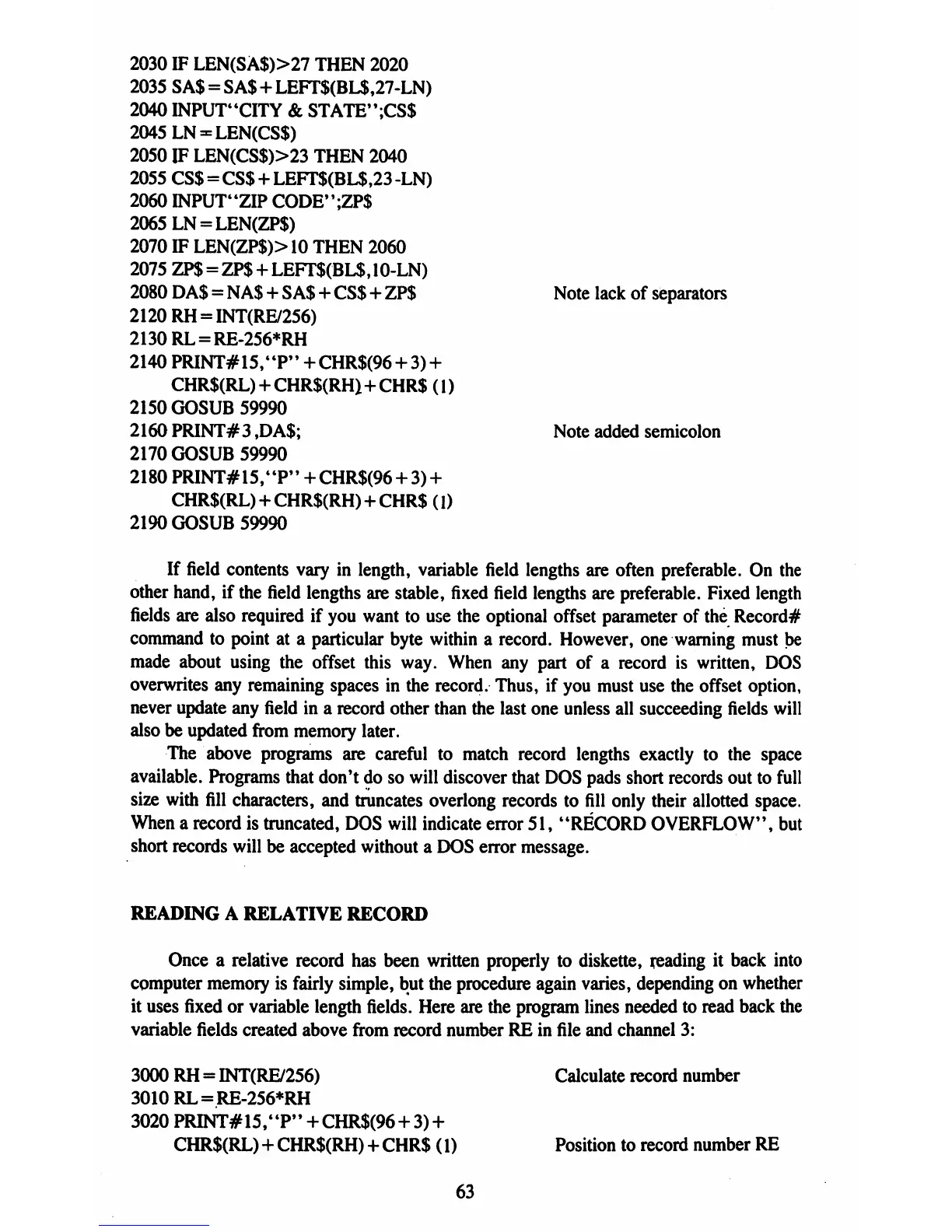 Commodore 1541-II - Reading a Relative Record