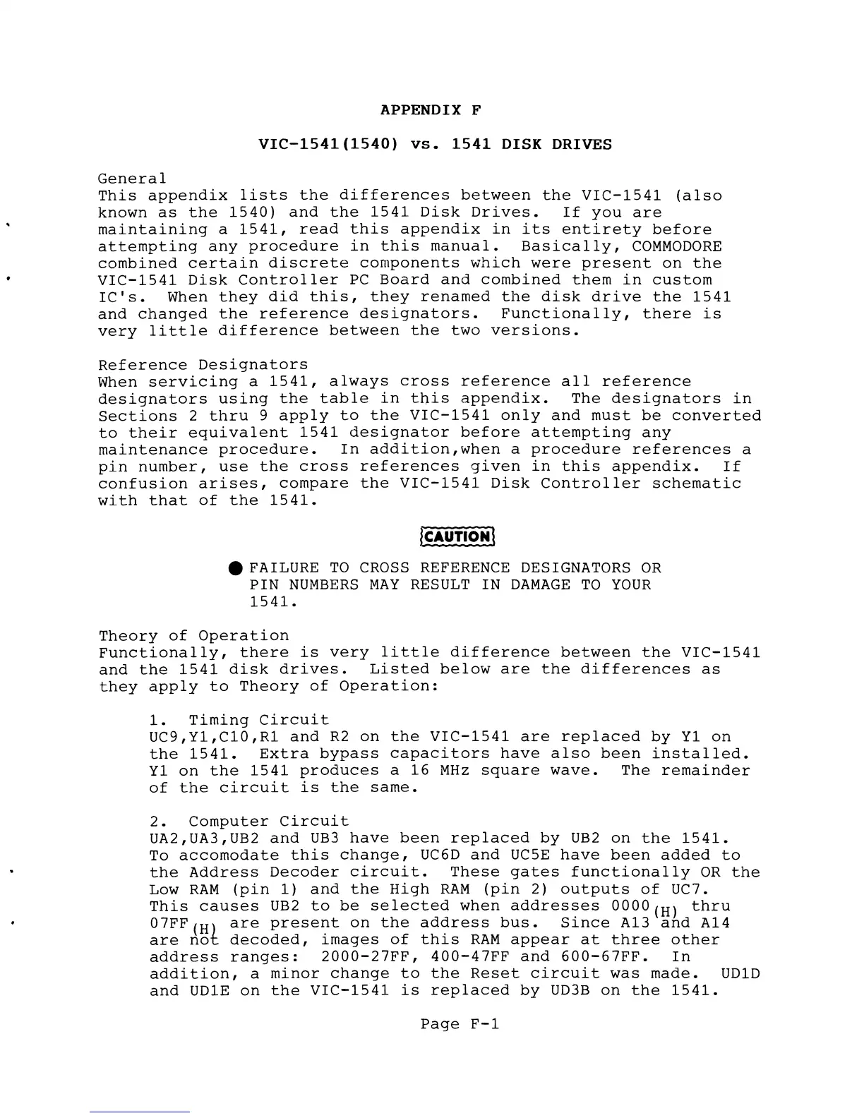 Commodore 1541 - Appendix F: VIC-1541 vs. 1541 Drives; General Differences Overview; Reference Designator Mapping; Theory of Operation Differences