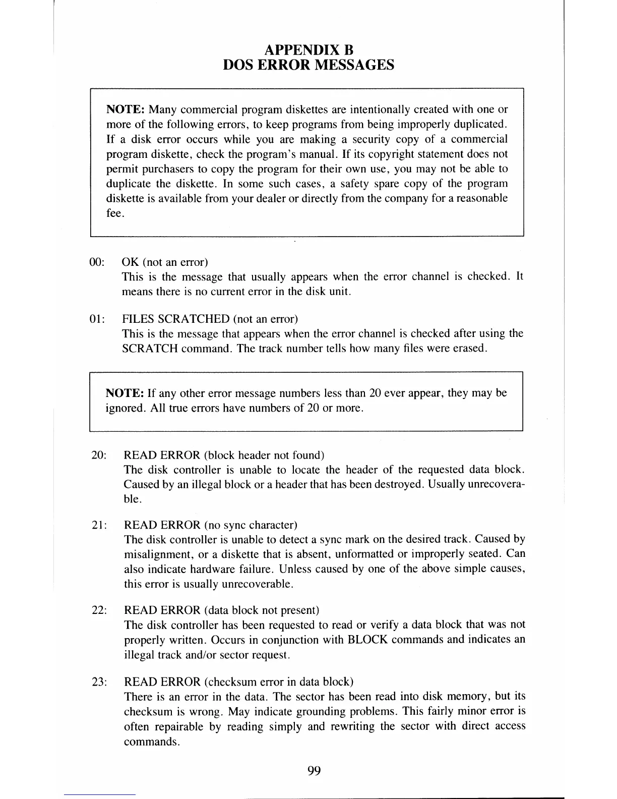 DOS ERROR MESSAGES