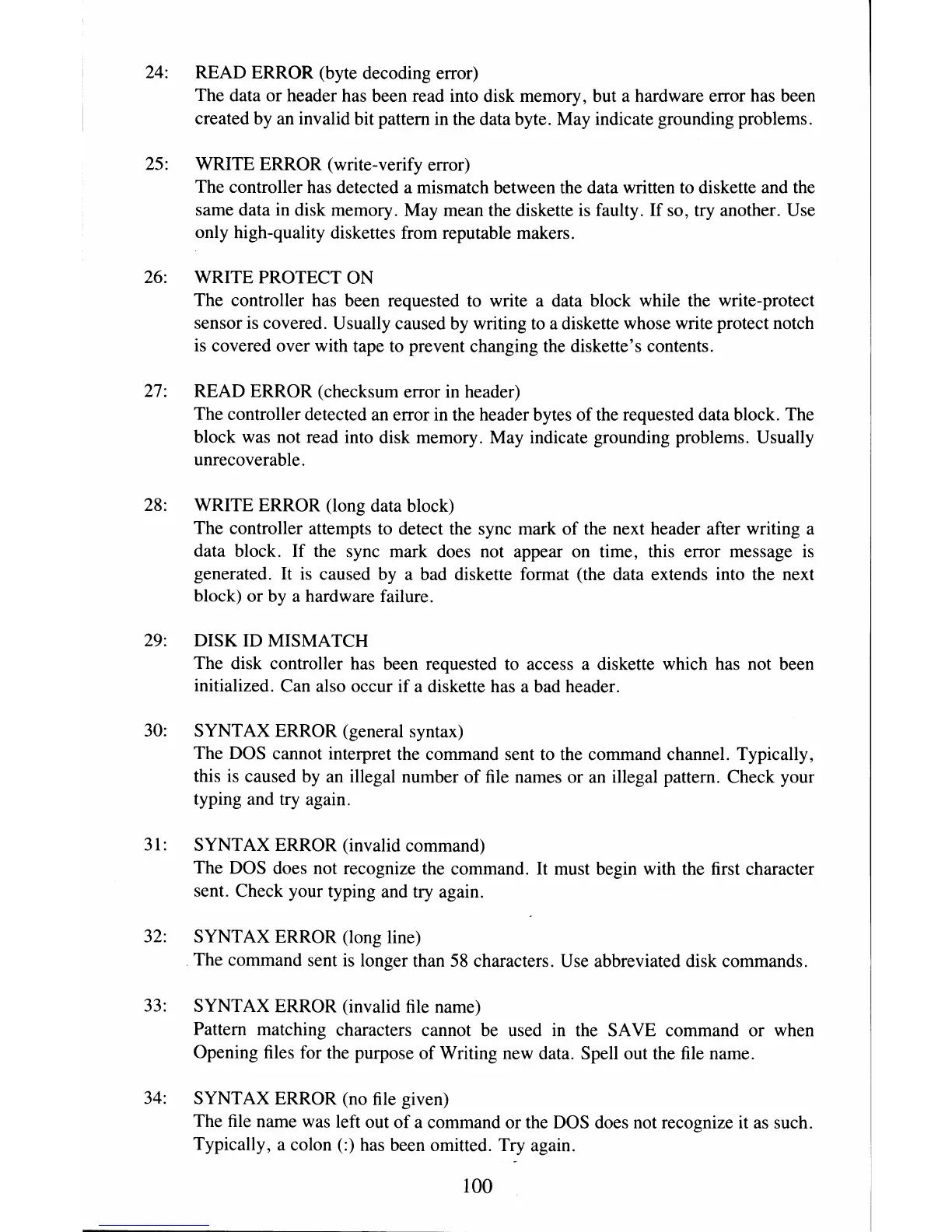 characters. Use abbreviated disk commands.