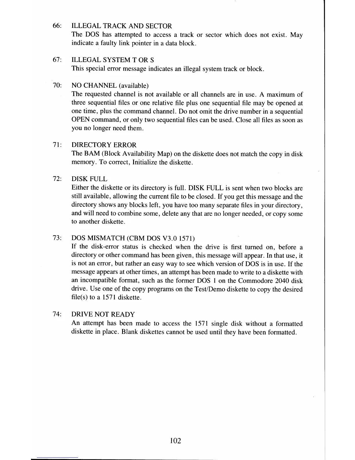 73: DOS MISMATCH (CBM DOS V3.0 1571)